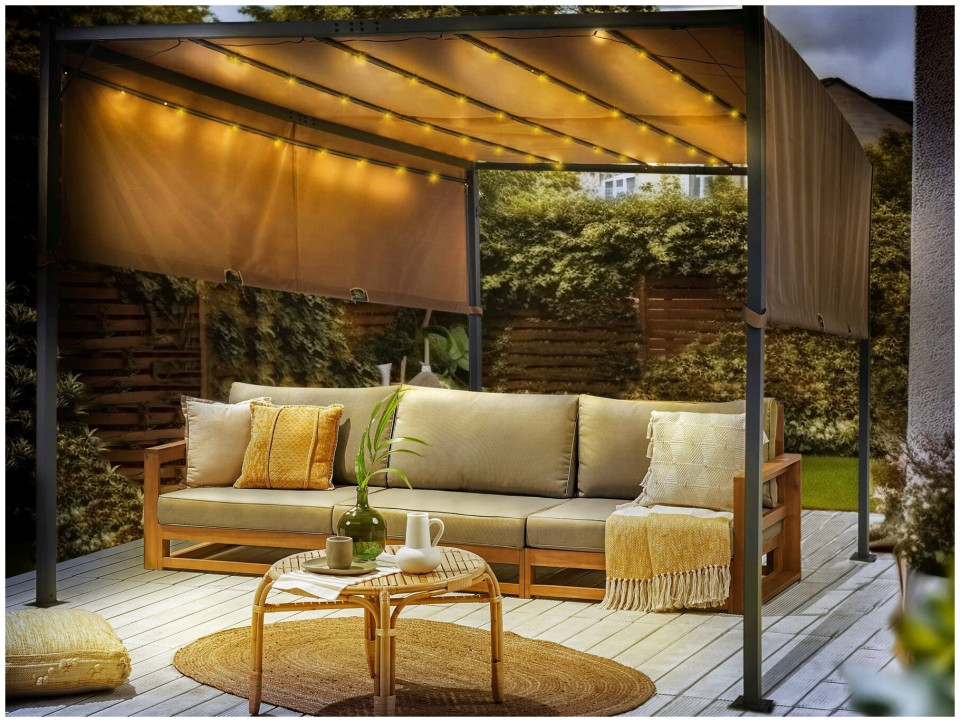 Περίπτερο κήπου Beliani LED 310 x 310 cm καφέ PARGA Lumarko! 13557060 4255664858115