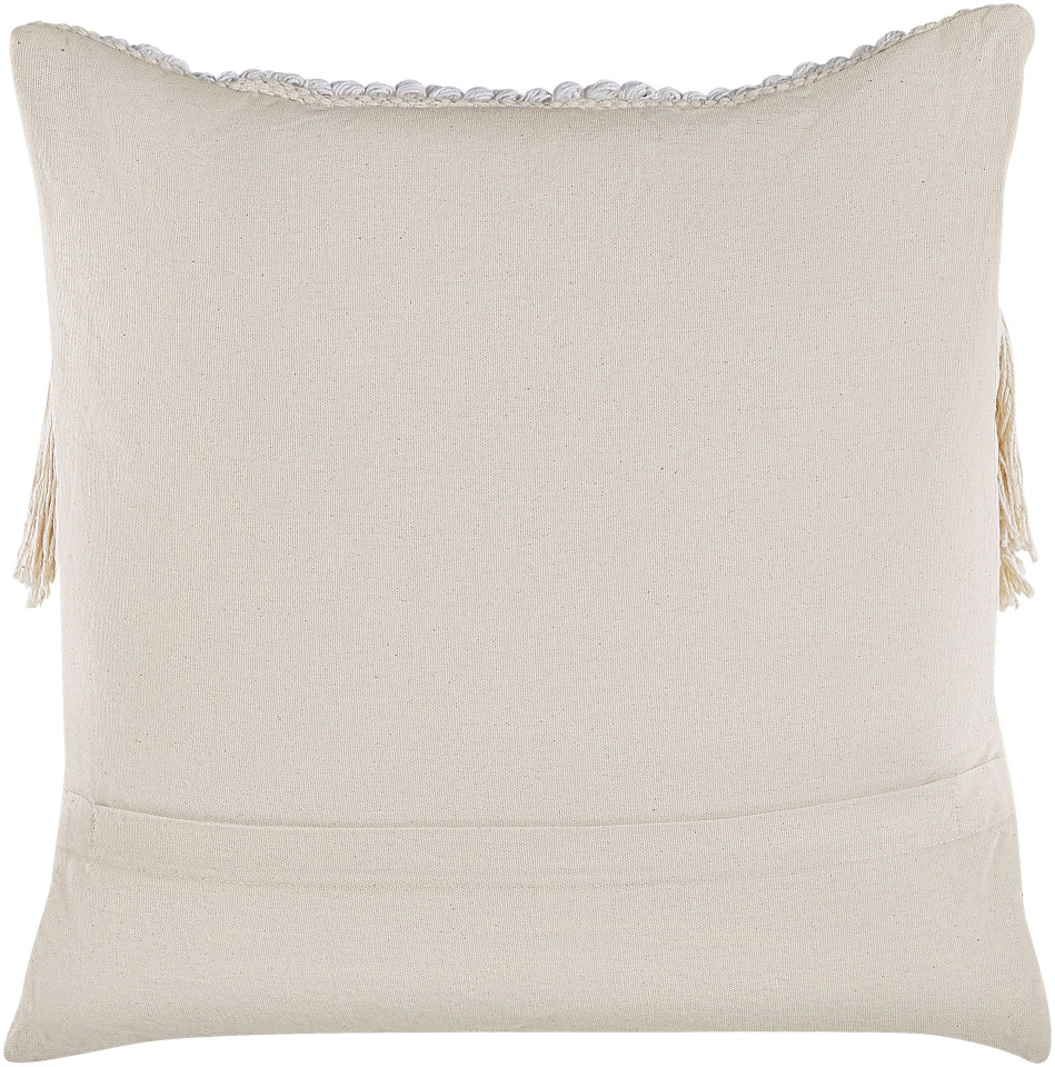 Με αυτό το διακοσμητικό μαξιλάρι, ακόμη και ένας παλιός καναπές θα αποκτήσει μια εντελώς νέα εμφάνιση. Η εντυπωσιακή ύφανση σε συνδυασμό με το ανάγλυφο ύφασμα και τα κρόσσια το κάνουν να ταιριάζει σε boho ή εκλεκτικούς εσωτερικούς χώρους. Η βαμβακερή μαξιλαροθήκη έχει σχέδιο μπροστά και πίσω σε μονόχρωμο με φερμουάρ κρυμμένο κάτω από την πτυχή. Ύψος: 12