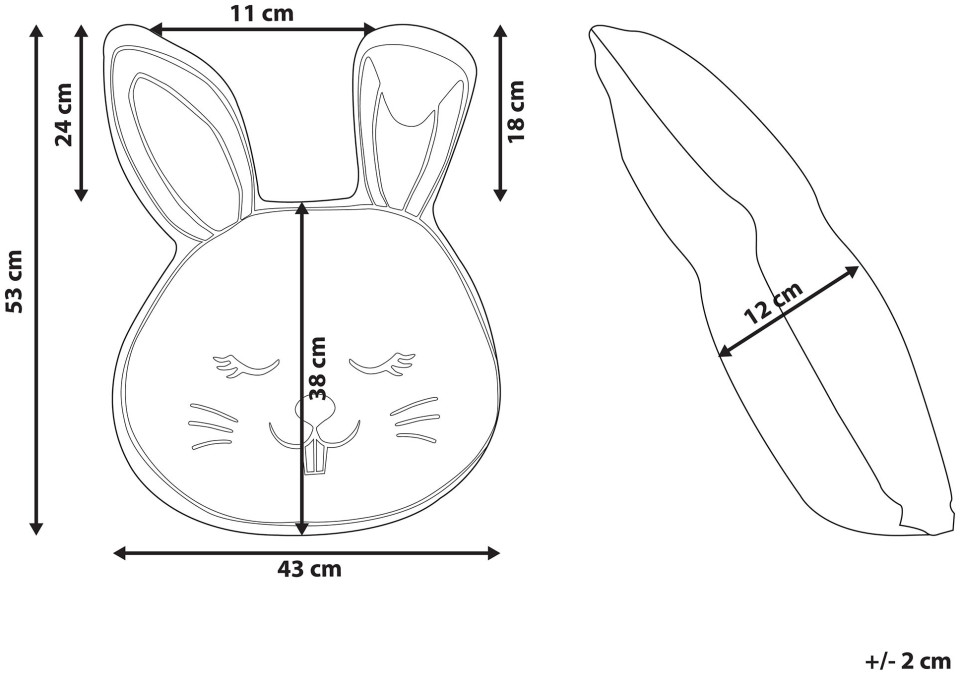 Αυτό το αξιολάτρευτο μαξιλάρι με μοτίβο ζώων θα είναι η τέλεια προσθήκη στο δωμάτιο του παιδιού σας. Έχει σχήμα και στάμπα κουνελιού και είναι φτιαγμένο από ευχάριστο στην αφή βαμβάκι. Χάρη στην απαλή γέμιση, είναι τέλειο για καθιστή ή ύπνο, αλλά μπορεί να χρησιμοποιηθεί και ως παιχνίδι. Το μαξιλάρι είναι ραμμένο, δεν κλείνει με φερμουάρ, ώστε να μην προεξέχουν επικίνδυνα στοιχεία. Ύψος: 12 Πλάτος: 43 Βάθος: 53 Βάρος: 1,1 Υλικό: Βαμβάκι{Type}Μαξιλάρι . {Type}Μαξιλάρι . {Type}Μαξιλάρι