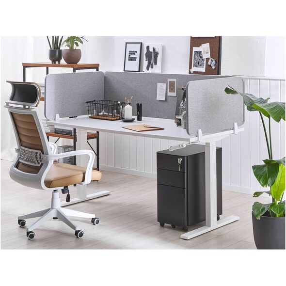 Θέλετε να ορίσετε με σαφήνεια τα όρια του χώρου εργασίας σας ή να διασφαλίσετε το απόρρητο; Ένα διαχωριστικό γραφείου είναι ένας εύκολος τρόπος για να κάνετε και τα δύο. Προσαρμόζεται εύκολα χρησιμοποιώντας τους παρεχόμενους σφιγκτήρες, θα κρατήσει τα αδιάκριτα βλέμματα μακριά από την οθόνη ή τα έγγραφά σας. Η ανθεκτική σανίδα PET με επένδυση από πολυεστερικό ύφασμα φαίνεται κομψή και βοηθά στη σίγαση των ήχων του περιβάλλοντος, διευκολύνοντας τη συγκέντρωση στη δουλειά. Ύψος: 40