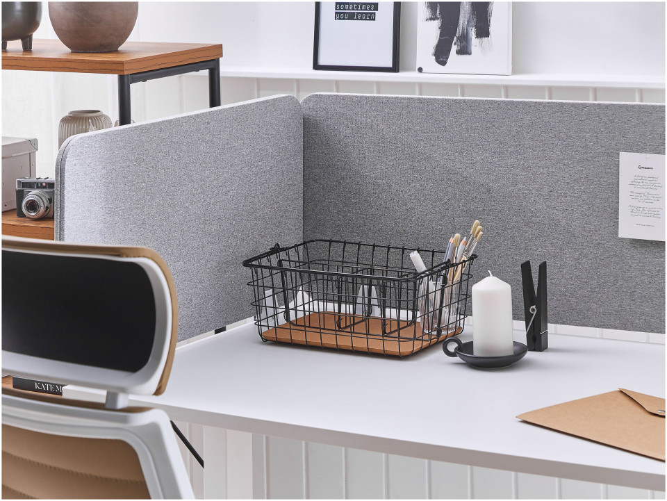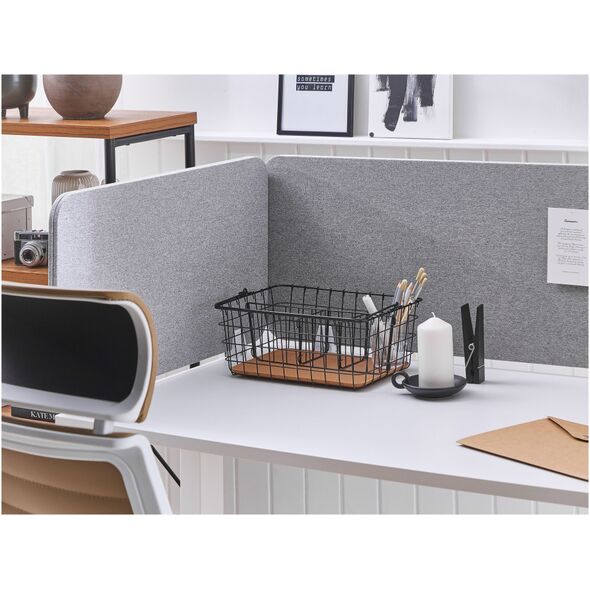 Θέλετε να ορίσετε με σαφήνεια τα όρια του χώρου εργασίας σας ή να διασφαλίσετε το απόρρητο; Ένα διαχωριστικό γραφείου είναι ένας εύκολος τρόπος για να κάνετε και τα δύο. Προσαρμόζεται εύκολα χρησιμοποιώντας τους παρεχόμενους σφιγκτήρες, θα κρατήσει τα αδιάκριτα βλέμματα μακριά από την οθόνη ή τα έγγραφά σας. Η ανθεκτική σανίδα PET με επένδυση από πολυεστερικό ύφασμα φαίνεται κομψή και βοηθά στη σίγαση των ήχων του περιβάλλοντος, διευκολύνοντας τη συγκέντρωση στη δουλειά. Ύψος: 40