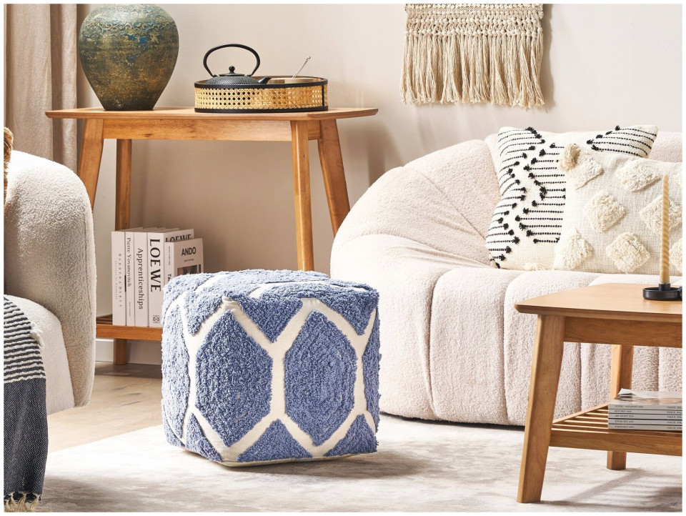 Beliani Pouffe 40 x 40 cm μπεζ και μπλε ROJHAN 13491240 4255664804341