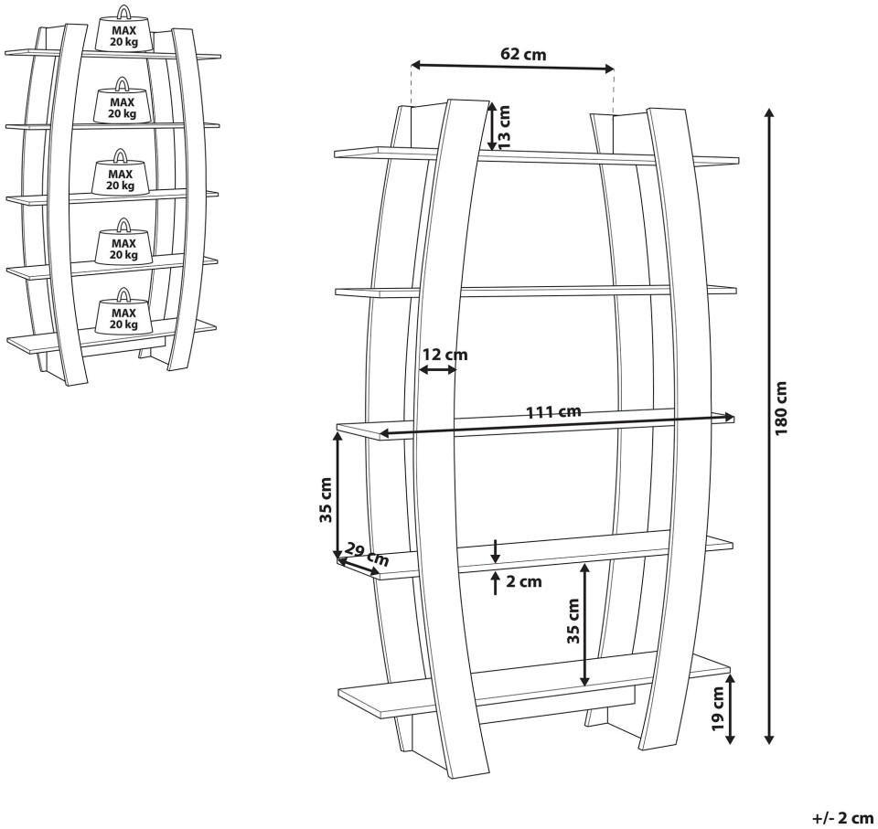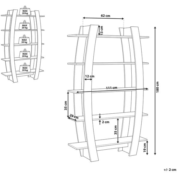 Βελτιώστε το διαμέρισμά σας με αυτή τη βιβλιοθήκη που συνδυάζει χρηστικές και διακοσμητικές λειτουργίες. Κατασκευασμένο από ανθεκτικά, ανθεκτικά υλικά, σίγουρα θα χρησιμεύσει για πολλά χρόνια, χωρίς να χρειάζεται συχνή φροντίδα. Η δομή έχει 5 μεγάλα ράφια που μπορούν να χρησιμοποιηθούν με πολλούς τρόπους. Ανεξάρτητα από το αν τοποθετήσετε επάνω τους αναμνηστικά γιορτών, αγαπημένες φωτογραφίες, βιβλία ή διακοσμητικά αντικείμενα, θα λειτουργήσουν τέλεια. Η ασυνήθιστη εμφάνιση του ραφιού θα προσθέσει μια μοντέρνα ατμόσφαιρα σε κάθε εσωτερικό χώρο. Ύψος: 180