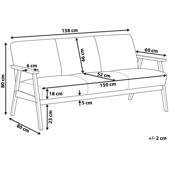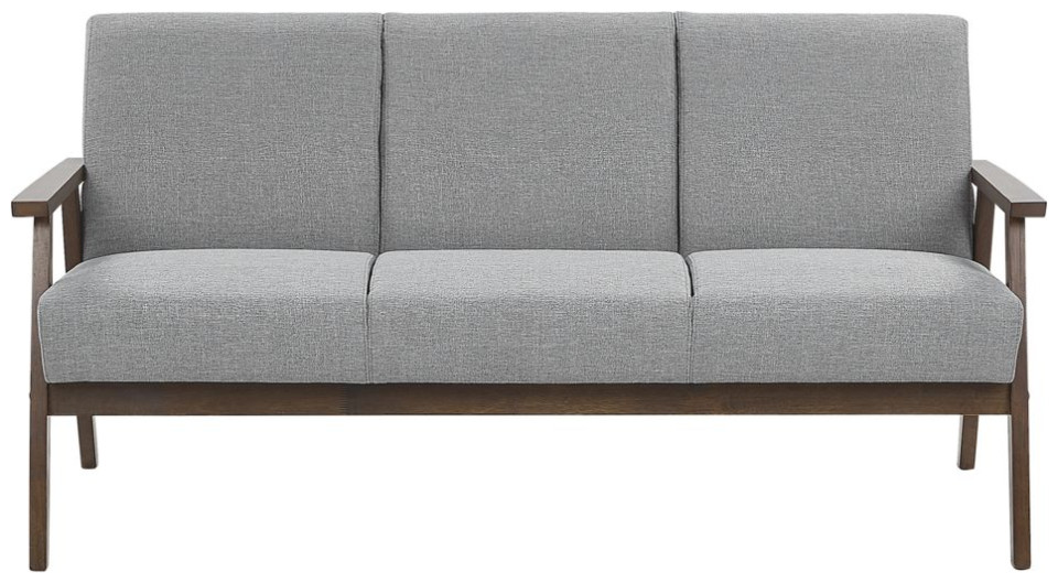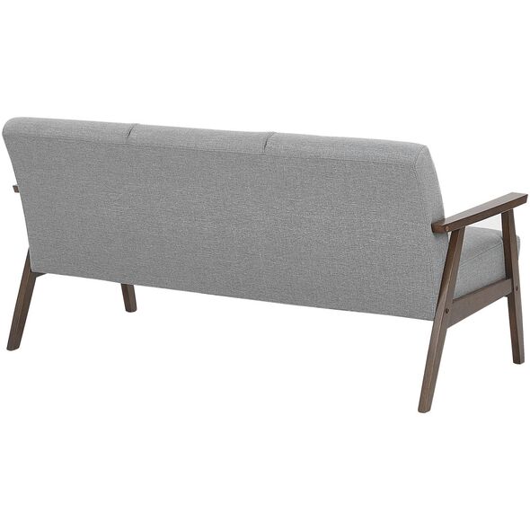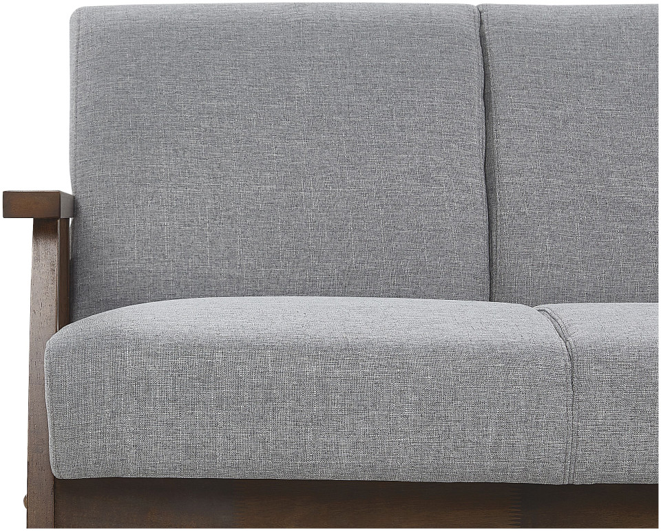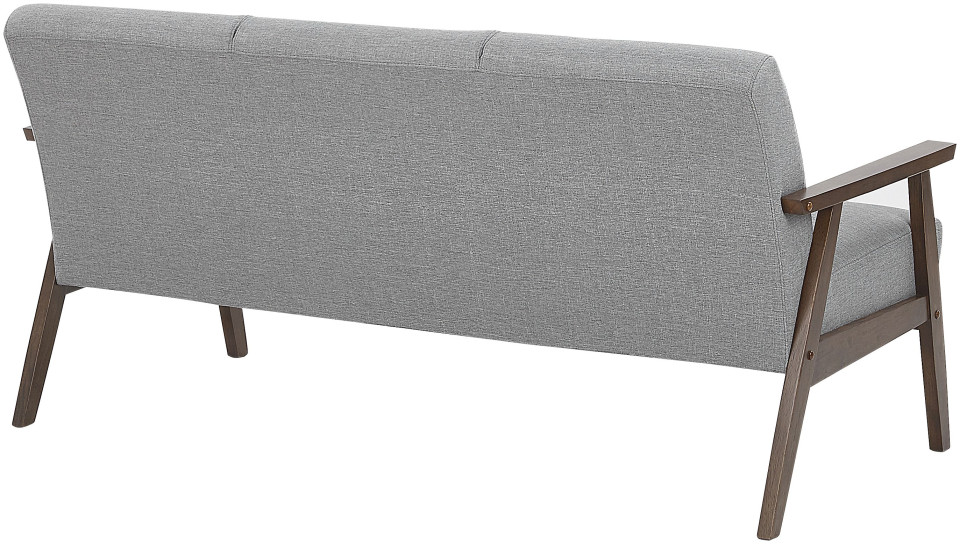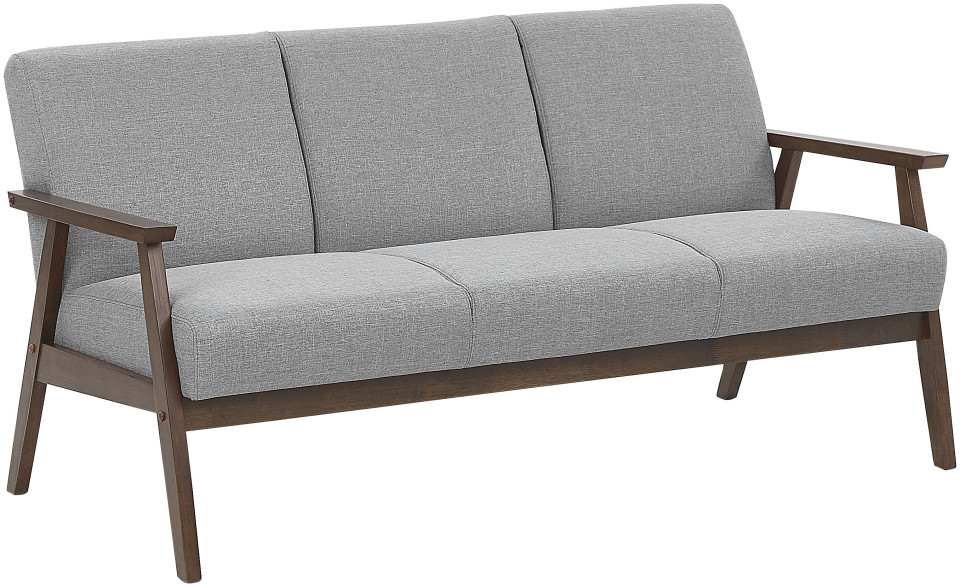 Προσθέστε μια ρετρό ατμόσφαιρα στο σαλόνι σας με αυτόν τον φαρδύ καναπέ 3 θέσεων. Η ταπετσαρία στο κάθισμα και την πλάτη είναι κατασκευασμένη από υψηλής ποιότητας πολυεστέρα, που εγγυάται τη μεγάλη διάρκεια ζωής του προϊόντος και είναι επίσης ευχάριστη στην αφή. Τα παχιά γκρι μαξιλάρια εξασφαλίζουν άνεση ενώ κάθεστε και ο ξύλινος σκελετός εξασφαλίζει τη σταθερότητα της δομής. Χάρη στη μινιμαλιστική του εμφάνιση, ο καναπές θα λειτουργήσει καλά με μια ποικιλία αξεσουάρ και θα είναι επίσης το επίκεντρο του δωματίου σας. Ύψος: 80
