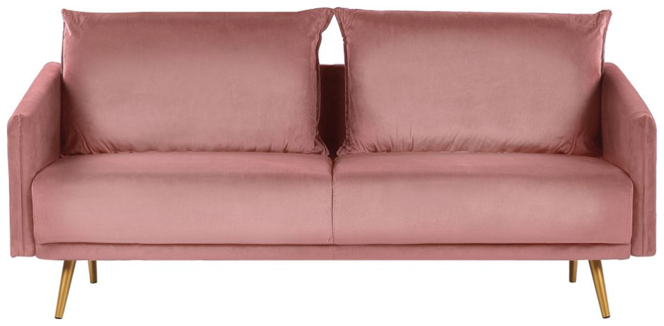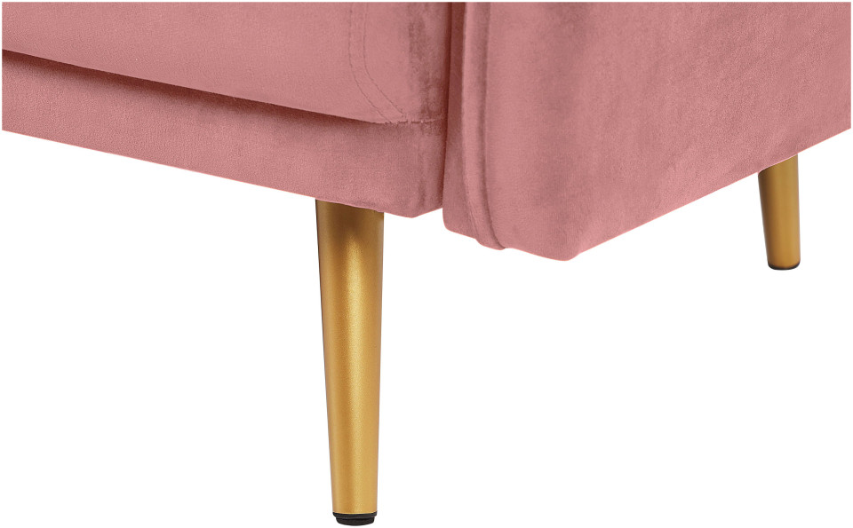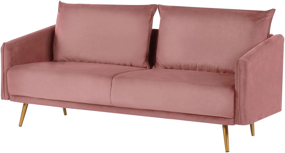 Εξαιρετική άνεση, απαλή στην αφή ταπετσαρία και κομψό φινίρισμα - αυτά είναι τα αναμφισβήτητα πλεονεκτήματα αυτού του ροζ καναπέ. Τα μαξιλάρια του καθίσματος και της πλάτης είναι γεμάτα με αφρό και ελατήρια τσέπης, τα οποία επιτρέπουν μακρά και άνετη ανάπαυση. Οι βελούδινες ταπετσαρίες και τα χρυσά μεταλλικά πόδια ταιριάζουν τέλεια σε μια glam διακόσμηση, αλλά μη διστάσετε να συνδυάσετε αυτόν τον καναπέ με boho ή ρετρό αξεσουάρ. Ύψος: 83