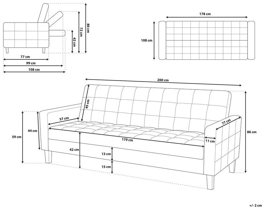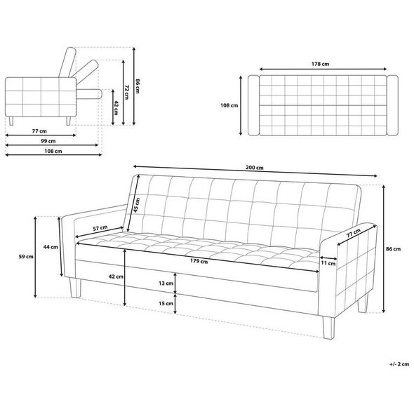 Κομψό, λειτουργικό και ταυτόχρονα πολύ άνετο. Ο παρουσιαζόμενος επενδυμένος καναπές δεν είναι μόνο ένα άνετο μέρος για να καθίσουν τρία άτομα, αλλά χάρη στον εύκολο στη χρήση μηχανισμό ξεδίπλωσης, μπορεί επίσης να γίνει κρεβάτι για δύο άτομα. Το εργονομικό σχήμα, το ευγενές χρώμα και το κλασικό καπιτονέ τονίζουν το καθολικό στυλ του τριθέσιου καναπέ. Ύψος: 86