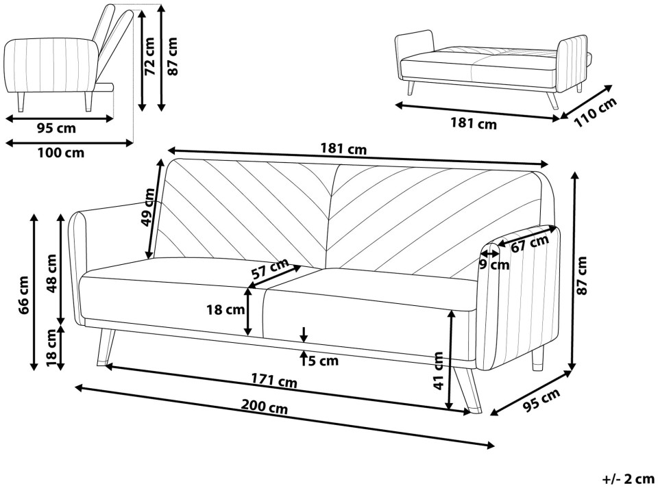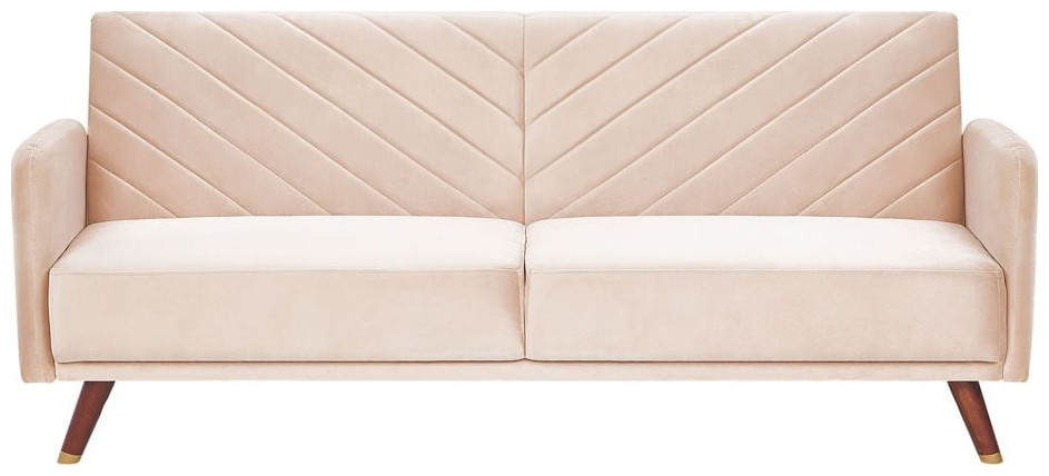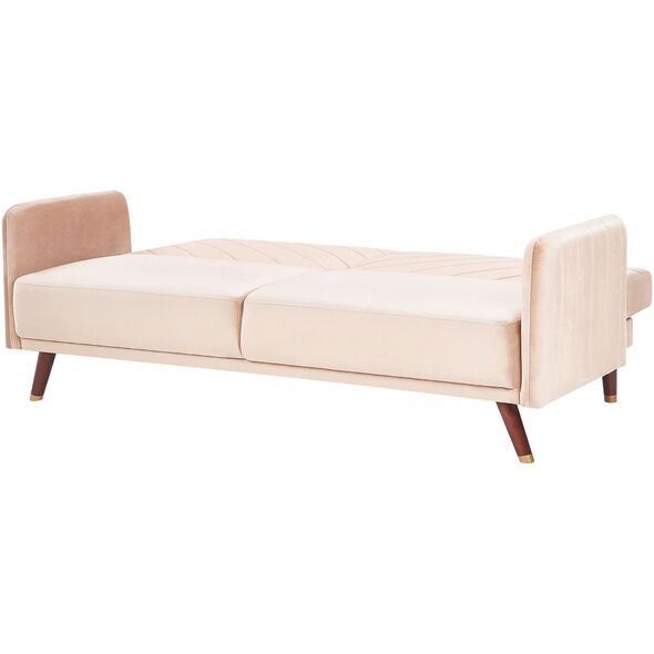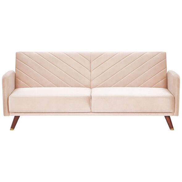 Ο πτυσσόμενος καναπές θα ζωντανέψει κάθε σαλόνι και θα ταιριάζει τόσο σε λαμπερούς όσο και σε παραδοσιακούς εσωτερικούς χώρους. Οι διαγώνιες ραφές στην πλάτη και τα πόδια από καουτσούκ από σκούρο ξύλο καρυδιάς δίνουν στον καναπέ μια ρετρό εμφάνιση. Ο τριθέσιος καναπές είναι επενδεδυμένος με ένα απαλό στην αφή, υψηλής ποιότητας ύφασμα που μοιάζει με βελούδο, το οποίο εγγυάται την υψηλότερη άνεση χρήσης και αντοχή για χρόνια. Χάρη στη λειτουργία ύπνου, ο καναπές είναι τέλειος ως κρεβάτι για τους επισκέπτες ή ένα άνετο μέρος για έναν υπνάκο. Ύψος: 87