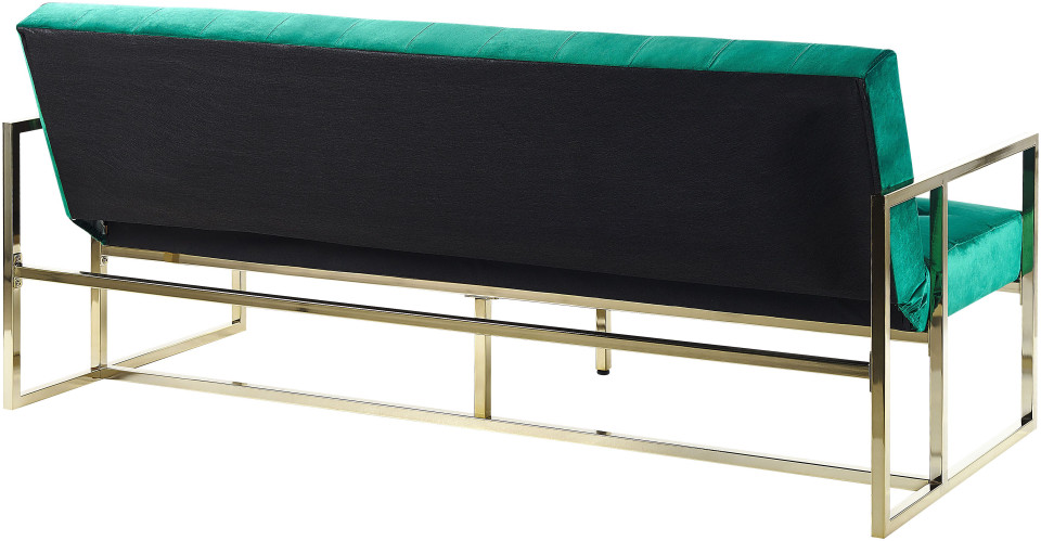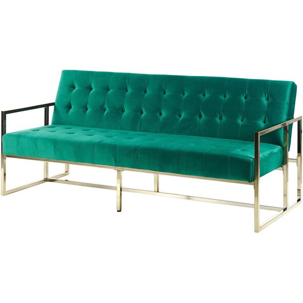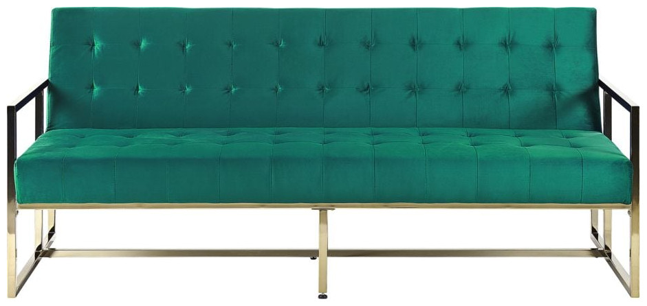 Αυτός ο εντυπωσιακός καναπές θα κάνει το σαλόνι σας να μοιάζει με κάτι που βγαίνει από το εξώφυλλο ενός περιοδικού εσωτερικού σχεδιασμού. Ο σκελετός και η πλάτη του είναι επενδυμένα με λεία βελούδινη επένδυση, η οποία, διακοσμημένη με προσεγμένο καπιτονέ, δίνει στα έπιπλα έναν πραγματικά παρακμιακό χαρακτήρα. Σε συνδυασμό με ένα απλό, γυαλιστερό χρυσό πλαίσιο, θα γίνει ένα πολυτελές σημείο εστίασης σε κάθε δωμάτιο. Το μεγαλείο αυτού του καναπέ ξεπερνά τη γοητευτική του εμφάνιση, γιατί χάρη στην αναδιπλούμενη πλάτη μπορείτε να τον χρησιμοποιήσετε και ως επιπλέον χώρο ύπνου. Αυτός ο 3θέσιος καναπές θα είναι το πιο κομψό και λειτουργικό στοιχείο της διάταξης στο σπίτι σας. Ύψος: 83