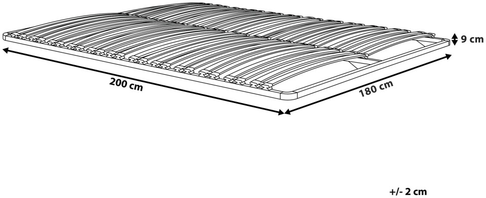 Το πλαίσιο υψηλής ποιότητας εξασφαλίζει σταθερή στήριξη του στρώματος και επαρκή αερισμό. Ο ανθεκτικός ατσάλινος σκελετός με πηχάκια είναι μια εξαιρετική βάση για το στρώμα. Οι λωρίδες είναι κατασκευασμένες από εξαιρετικά ανθεκτικό, εύκαμπτο ξύλο λεύκας και η τοποθέτησή τους είναι από συνθετικό καουτσούκ. Ο σκελετός είναι κατάλληλος για όλους τους τύπους στρωμάτων. Έχει σχεδιαστεί για να απορροφά κάθε πίεση και να εξασφαλίζει την υψηλότερη άνεση ύπνου. Ύψος: 9