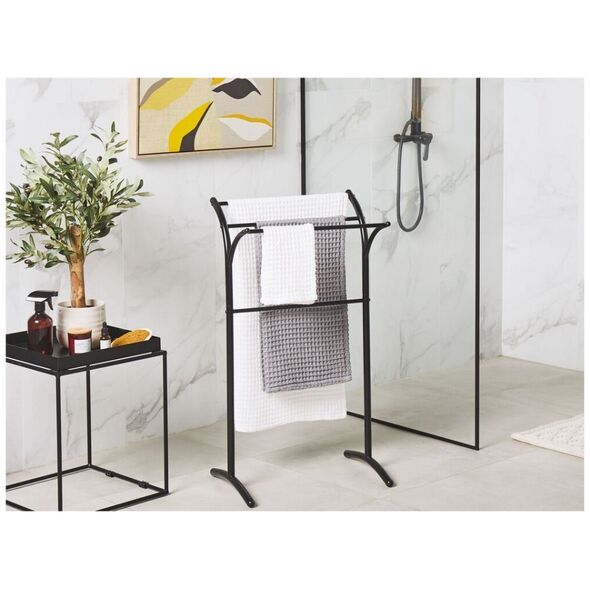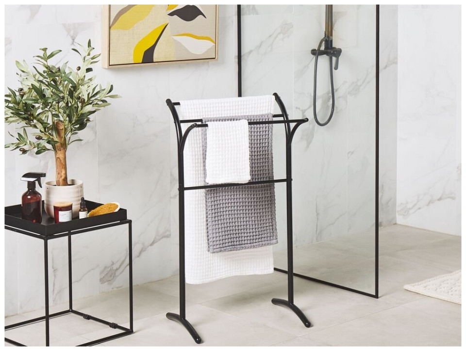 Αυτή η μεταλλική κρεμάστρα για πετσέτες, κατασκευασμένη από ανθεκτικό ατσάλι, είναι μια απαραίτητη προσθήκη σε κάθε κομψό μπάνιο σε μοντέρνο ή παραδοσιακό στυλ. Ελαφρύ αλλά σταθερό, μπορεί εύκολα να μεταφερθεί από μέρος σε μέρος. Τοποθετήστε το κοντά στην μπανιέρα ή το ντους για να έχετε πάντα πετσέτες σε κοντινή απόσταση.{Χρώμα} μαύρο . {Χρώμα} μαύρο . {Χρώμα} μαύρο . {Χρώμα} μαύρο . {Χρώμα}μαύρο