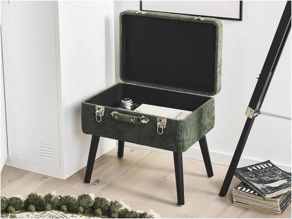 Εμπνευσμένο από το vintage στυλ, το σκαμπό με ταπετσαρία με πράσινο κοτλέ είναι διακοσμημένο με διακοσμητικά κουμπιά, γυαλιστερές ασημένιες αγκράφες και ένα κομψό χερούλι. Το κάθισμα που μοιάζει με βαλίτσα μπορεί να ανοίξει και υπάρχει χώρος στο εσωτερικό για κάθε είδους μικροαντικείμενα. Λεπτά, κομψά πόδια τονίζουν την κλασική εμφάνιση του σκαμπό. Ύψος: 46 Πλάτος: 52 Βάθος: 36 Βάρος: 6,6 Περιοχή καθίσματος: 52x36 Υλικό: Κοτλέ{Υλικό πλαισίου} Ξύλο . {Υλικό πλαισίου} Ξύλο . {Υλικό πλαισίου} Ξύλο . {Υλικό πλαισίου} Ξύλο . {Υλικό πλαισίου} Ξύλο . {Υλικό πλαισίου} Ξύλο . {Υλικό πλαισίου} Ξύλο . {Υλικό πλαισίου} Ξύλο . {Υλικό πλαισίου} Ξύλο . {Χρώμα ταπετσαρίας} Πράσινο. {Χρώμα ταπετσαρίας} Πράσινο. {Χρώμα ταπετσαρίας} Πράσινο. {Χρώμα ταπετσαρίας} Πράσινο. {Χρώμα ταπετσαρίας} Πράσινο. {Χρώμα ταπετσαρίας} Πράσινο. {Χρώμα ταπετσαρίας} Πράσινο. {Χρώμα ταπετσαρίας} Πράσινο. {Χρώμα ταπετσαρίας} Πράσινο. {Type} Universal . {Type} Universal . {Type} Universal . {Type} Universal . {Type} Universal . {Type} Universal . {Type} Universal . {Type} Universal . {Type} Universal