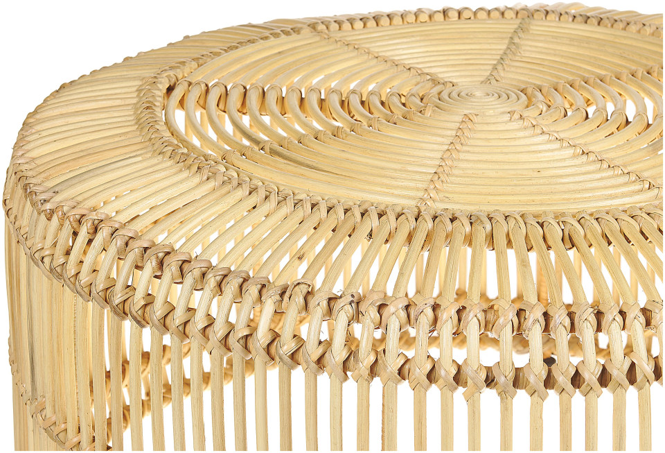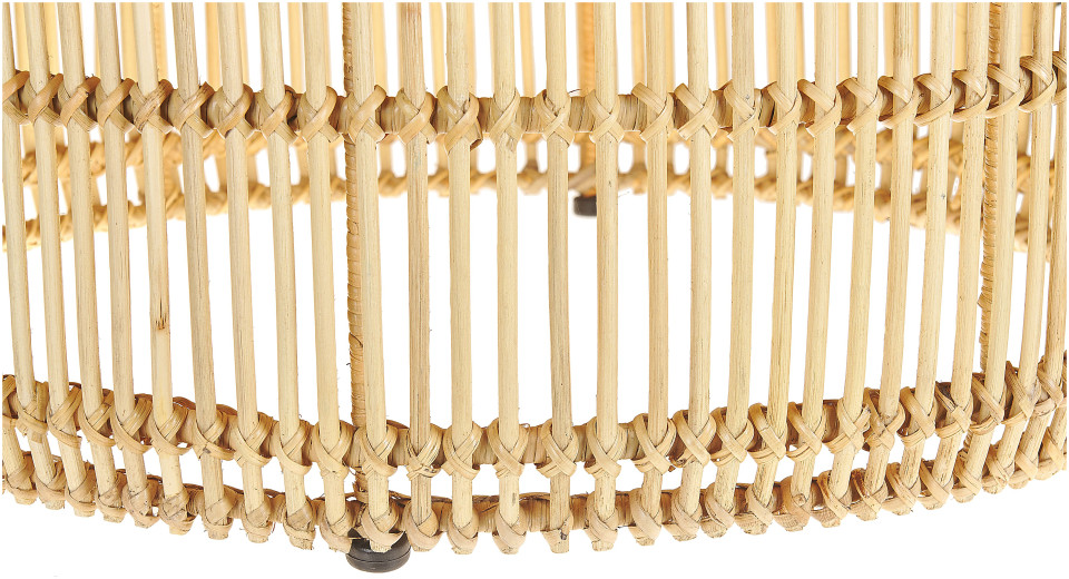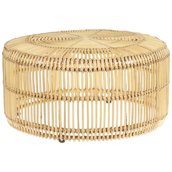 Ένα κομψό τραπεζάκι σαλονιού δεν είναι ένα αξεσουάρ που προορίζεται μόνο για εσωτερικούς χώρους. Αυτό το έπιπλο έχει σχεδιαστεί με γνώμονα την εξωτερική χρήση και έχει μια ασορτί, ρουστίκ εμφάνιση, που επιτυγχάνεται με το να είναι κατασκευασμένο από φυσικά ελαφρύ μπαστούνι. Ολόκληρη η δομή βασίζεται σε μεταλλικό σκελετό που εξασφαλίζει σταθερότητα. Θα λειτουργήσει καλύτερα σε μια ρύθμιση boho. Ύψος: 40