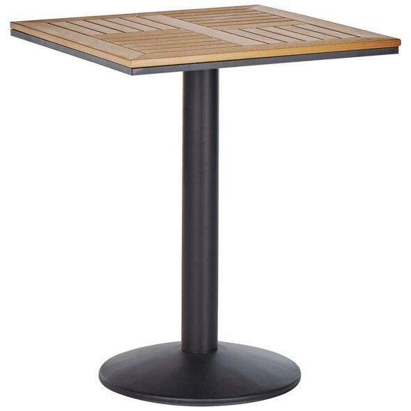 Δημιουργήστε έναν άνετο χώρο χαλάρωσης στον κήπο σας με αυτό το τραπεζάκι. Το ρουστίκ επάνω μέρος από συνθετικό ξύλο κάνει το τραπέζι να ταιριάζει τέλεια σε κάθε διάταξη. Η συμπαγής μεταλλική βάση εξασφαλίζει μέγιστη σταθερότητα, ενώ τονίζει τη μοναδική σχεδίαση των επίπλων. Χρησιμοποιήστε αυτό το τραπέζι μόνο του ή συνδυάστε το με ασορτί καρέκλες για να δημιουργήσετε το τέλειο μέρος για τον πρωινό σας καφέ.