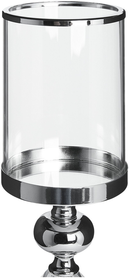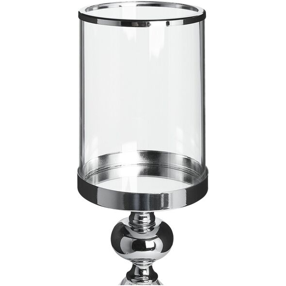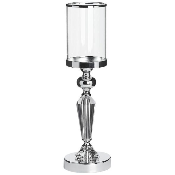 Προσθέστε λάμψη στο εσωτερικό σας με αυτό το μοναδικό κηροπήγιο. Κατασκευασμένο από συνδυασμό γυαλιού και μετάλλου, θα είναι τέλειο ως διακοσμητικό στοιχείο του εσωτερικού ενός σπιτιού, γραφείου ή αίθουσας γάμου. Η βάση είναι διακοσμημένη με ένα διακοσμητικό κρύσταλλο και μια ασημένια μπάλα, που δίνουν στο κηροπήγιο μια εξαιρετικά κομψή εμφάνιση. Ύψος: 42