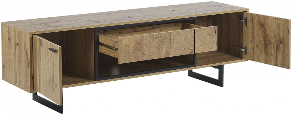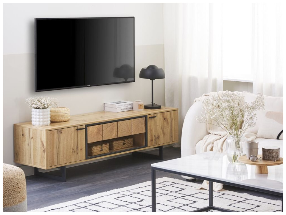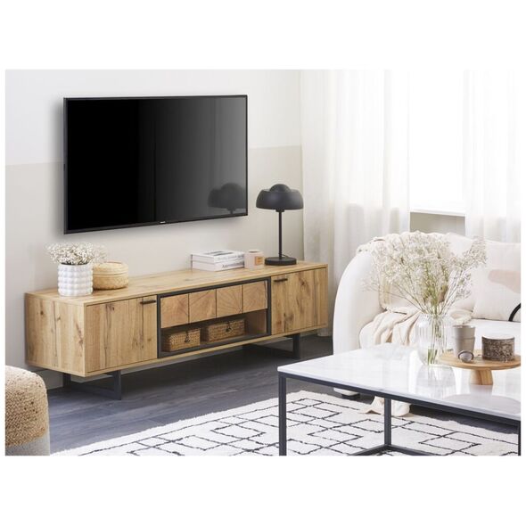 Αυτή η μοντέρνα βάση τηλεόρασης συνδυάζει τέλεια τη λειτουργικότητα με τον κομψό σχεδιασμό. Προσφέροντας ευρύχωρα ανοιχτά και κλειστά διαμερίσματα, θα σας βοηθήσει να οργανώσετε το χώρο σας. Τα ντουλάπια που κλειδώνουν με ράφια και συρτάρι θα κρύβουν πρόσθετα καλώδια, τηλεχειριστήρια και πολλά άλλα. Ένα ανοιχτό ράφι με τρύπα για καλώδια είναι το τέλειο μέρος για κονσόλα ή συσκευή αναπαραγωγής. Ο ζεστός τόνος του φινιρίσματος που μοιάζει με ξύλο έρχεται σε όμορφη αντίθεση με το μαύρο πλαίσιο και τη μεταλλική λεπτομέρεια, δίνοντας στο ντουλάπι μια βιομηχανική γοητεία.{Type}Υπουργείο . {Type}Υπουργείο . {Type}Υπουργείο . {Type}Υπουργείο . {Type}Υπουργείο . {Type}Υπουργείο . {Type}Υπουργείο . {Type}Υπουργείο . {Type}Υπουργείο . {Χρώμα} Καφέ . {Χρώμα} Καφέ . {Χρώμα} Καφέ . {Χρώμα} Καφέ . {Χρώμα} Καφέ . {Χρώμα} Καφέ . {Χρώμα} Καφέ . {Χρώμα} Καφέ . {Χρώμα} Καφέ