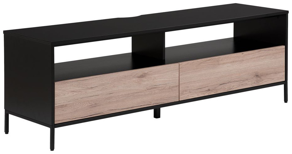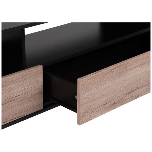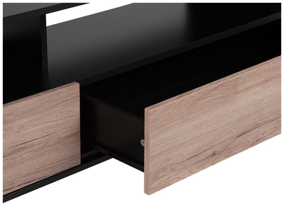 Ο συνδυασμός του μαύρου με το χρώμα του ανοιχτόχρωμου ξύλου κάνει το παρουσιαζόμενο τραπέζι τηλεόρασης όχι μόνο κομψό, αλλά πάνω απ 'όλα, πρακτικά έπιπλα που θα ταιριάζουν σε κάθε εσωτερικό χώρο. Επιπλέον, περιέχει δύο συρτάρια - ένα ιδανικό μέρος για να κρύψετε όλα τα gadget και τα καλώδια πολυμέσων. Ύψος: 52