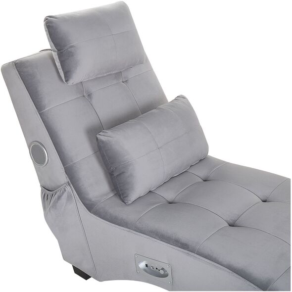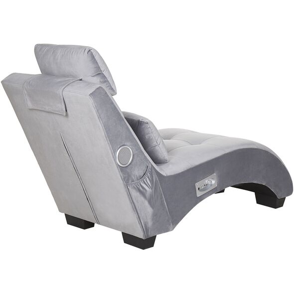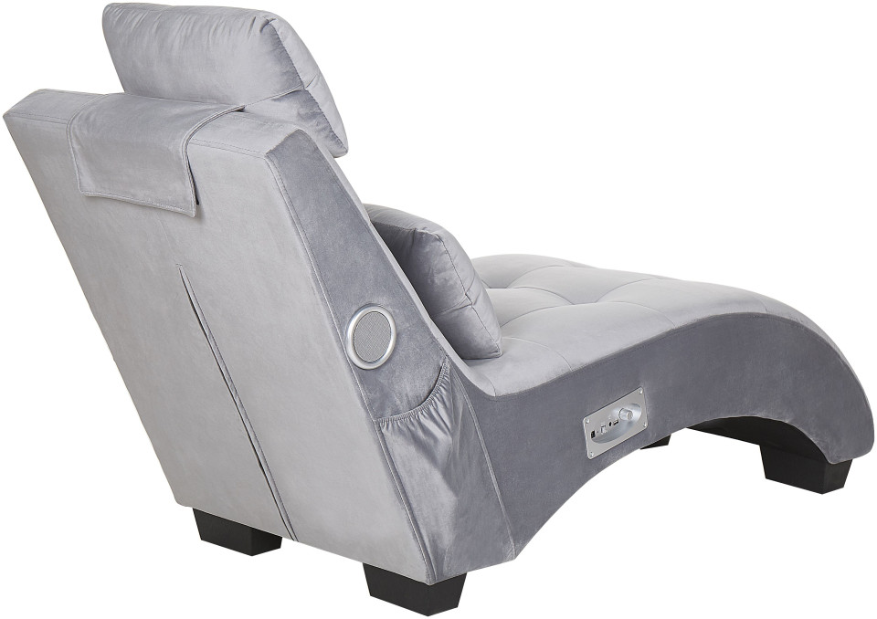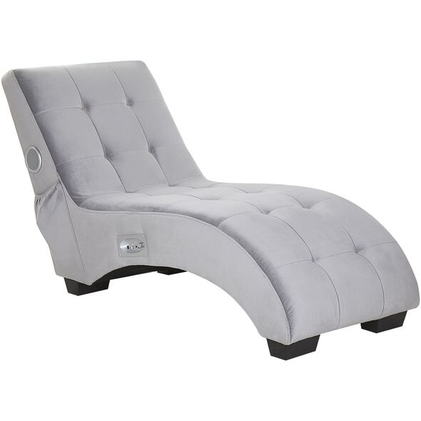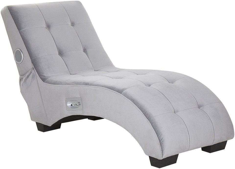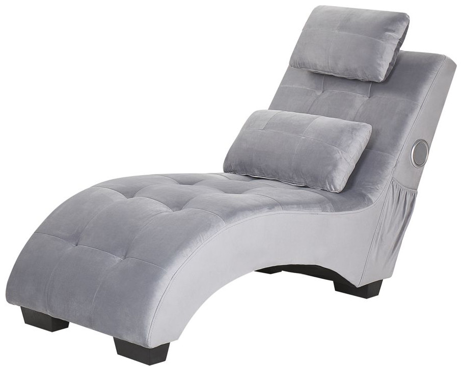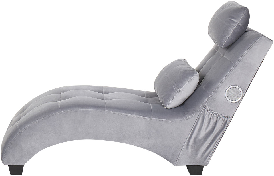 Αυτός ο ασυνήθιστος συνδυασμός κλασικής σεζλόνγκ με ηχείο Bluetooth είναι η τέλεια λύση για τους ηχοφίλους. Δεν χρειάζεται πλέον να χρησιμοποιείτε ακουστικά για να χαλαρώσετε με την αγαπημένη σας μουσική ή ηχητικό βιβλίο. Απλώς συνδέστε τη συσκευή σας στο ηχείο και βυθιστείτε στον ήχο. Η γκρι βελούδινη επένδυση είναι ανθεκτική στη φθορά. Ύψος: 82