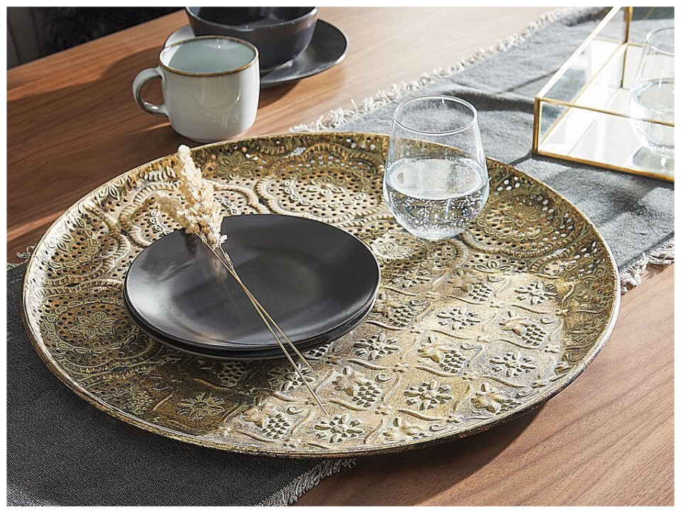 Βεβαιωθείτε ότι η τραπεζαρία σας είναι προσεκτικά διακοσμημένη. Αυτή η αντίκα μεταλλική πλάκα μπορεί να χρησιμοποιηθεί ως διακόσμηση τοίχου, χάρη σε ένα μικρό γάντζο ή αξεσουάρ τραπεζιού, παρέχοντας χώρο για φρούτα ή αποξηραμένα λουλούδια. Οι μικρές τρύπες δημιουργούν ανοιχτόχρωμα λουλουδάτα μοτίβα που ταιριάζουν με τη ρουστίκ διακόσμηση, αλλά θα βρουν επίσης τη θέση τους σε ένα glam εσωτερικό.{Υλικό} Χάλυβας . {Υλικό} Χάλυβας . {Υλικό} Χάλυβας . {Υλικό} Χάλυβας . {Υλικό} Χάλυβας . {Υλικό} Χάλυβας