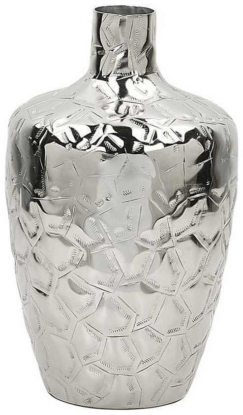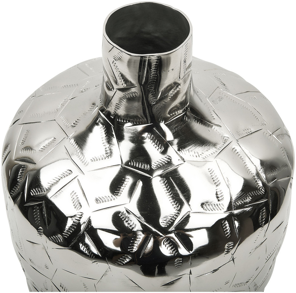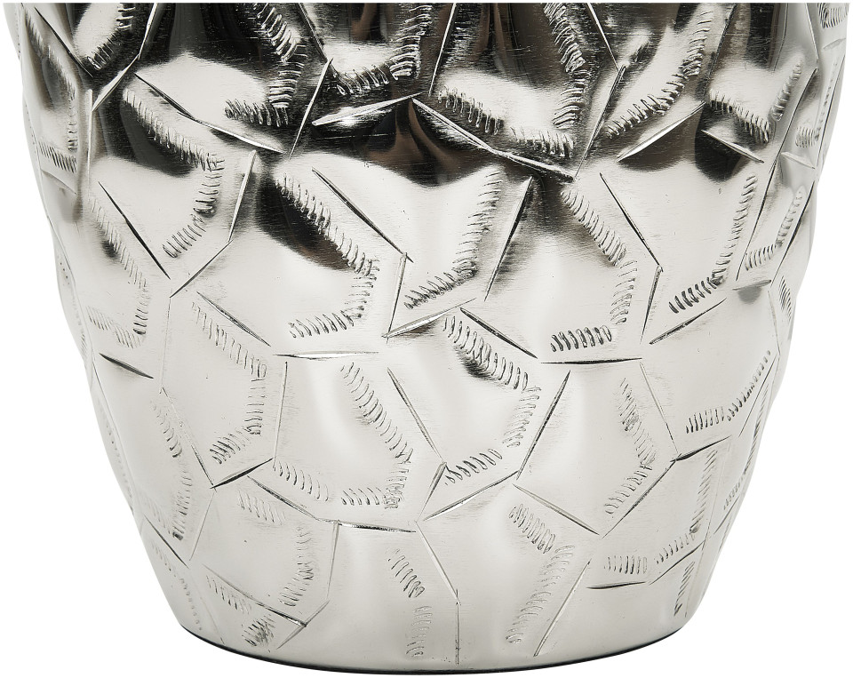 Ένα διακοσμητικό βάζο με λουλούδια θα προσθέσει λάμψη σε κάθε κομψό εσωτερικό. Είναι κατασκευασμένο από ασημί αλουμίνιο με μοναδική δομή που του προσδίδει απίστευτη γοητεία. Το βάζο θα φαίνεται υπέροχο συμπληρωμένο με φυσικά ή τεχνητά φυτά. Ύψος: 39