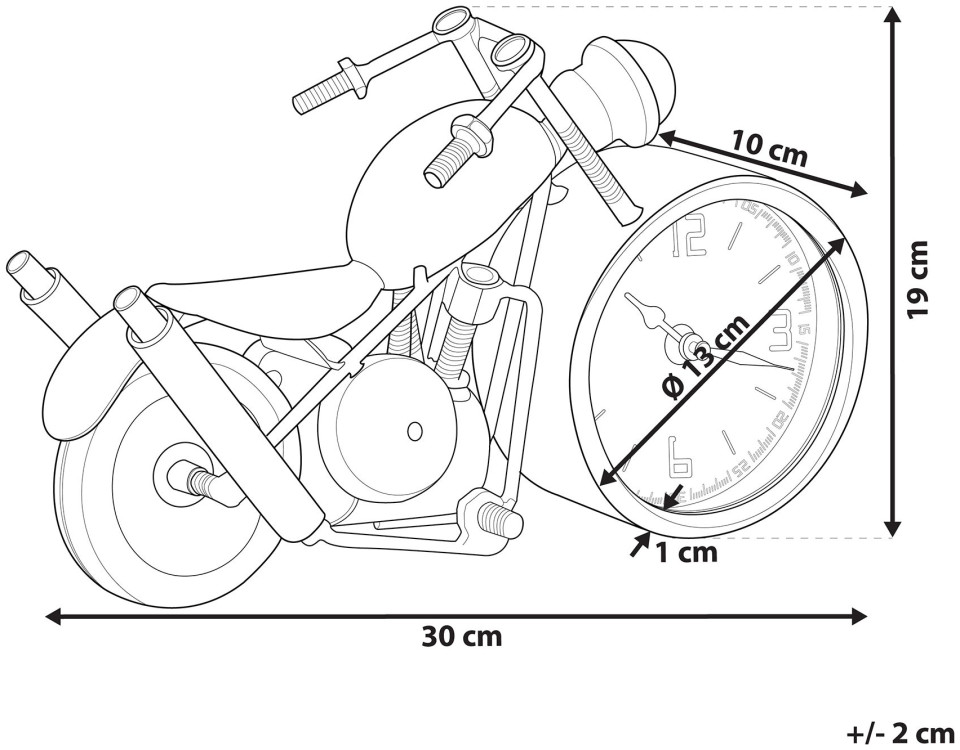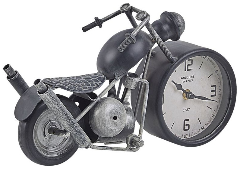 Αυτό το ασυνήθιστο όρθιο ρολόι σε σχήμα μοτοσικλέτας μπορεί να είναι μια τέλεια διακόσμηση για το σαλόνι, το υπνοδωμάτιο ή το γραφείο του σπιτιού σας. Τα καθολικά χρώματα και η ρετρό σχεδίασή του θα είναι τέλεια για κάθε στυλ εσωτερικού χώρου. Καθώς το προϊόν είναι ανθεκτικό, μπορεί να χρησιμοποιηθεί ως μακροχρόνια διακόσμηση στο δωμάτιο ενός λάτρη του αυτοκινήτου. Ύψος: 19 Πλάτος: 30 Βάθος: 11 Βάρος: 1,2 Υλικό: Σίδηρος{Type} Όρθια . {Type} Όρθια . {Type} Όρθια . {Type}Όρθια