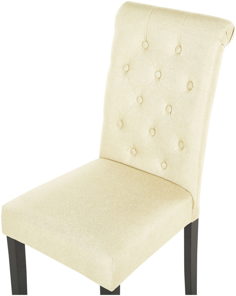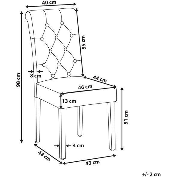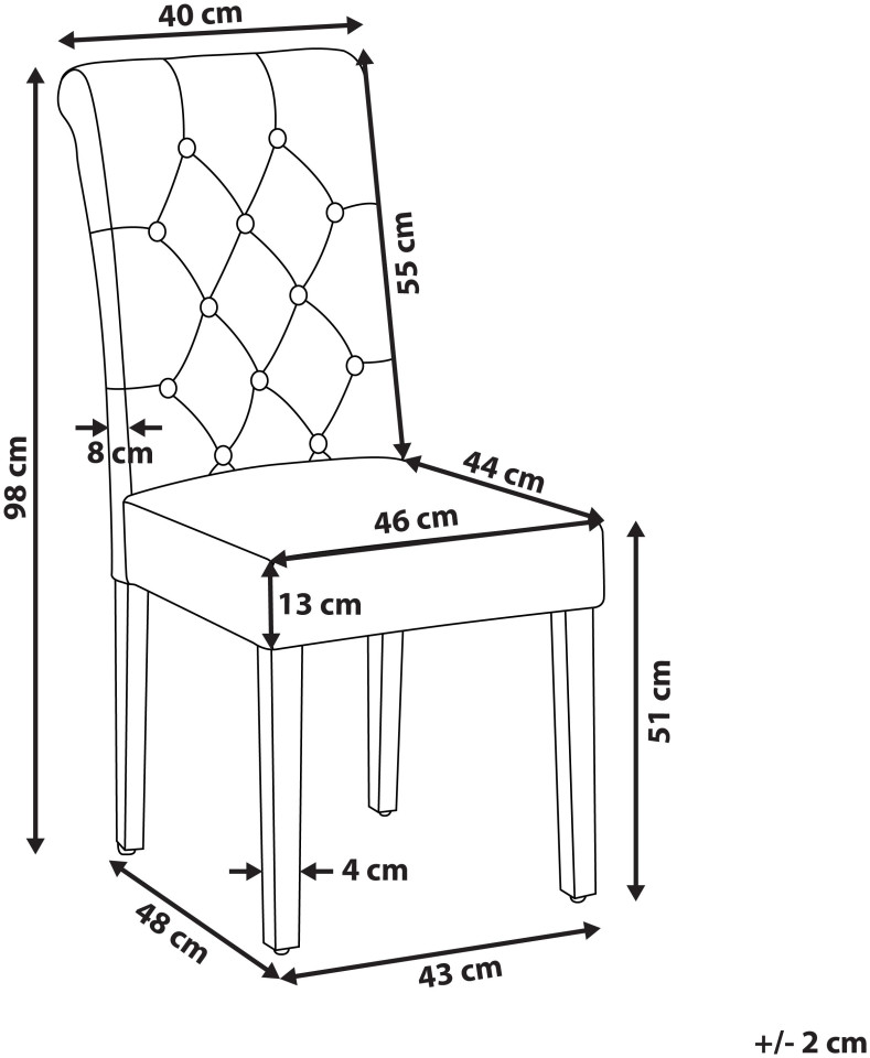 Szlachetna kolorystyka tapicerki oraz eleganckie, diamentowe szwy sprawiają, że te krzesła są prawdziwą perełką pasującą do wnętrz w stylu glamour. Możesz stworzyć luksusowy, królewski wygląd i uzyskać wyjątkowe miejsce przy stole jadalnym lub toaletce. Miękko wyściełane, welurowe siedzisko i oparcie doskonale uzupełniają nogi wykonane z wytrzymałego drewna sosnowego. Takie połączenie zapewnia nie tylko wygodę i stabilność, ale także piękny wygląd. Wysokość: 98