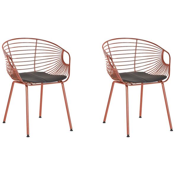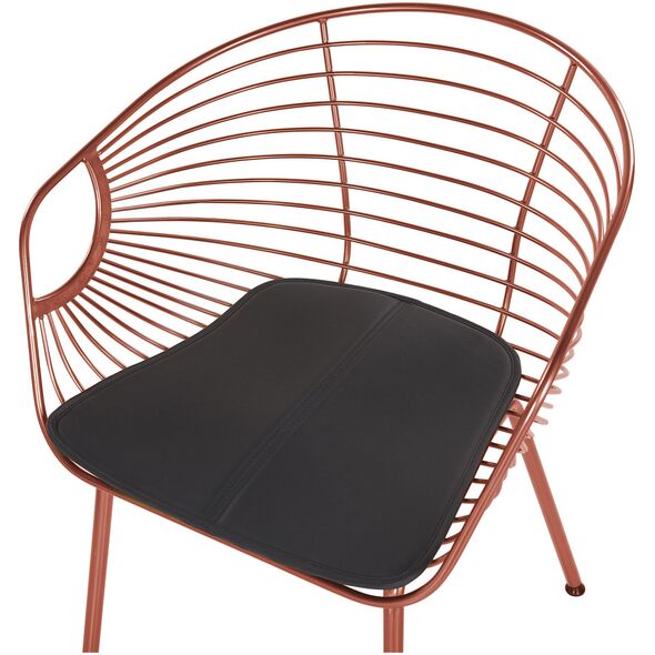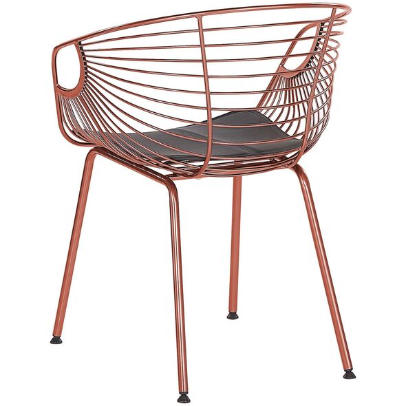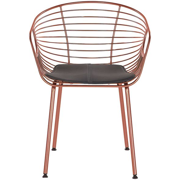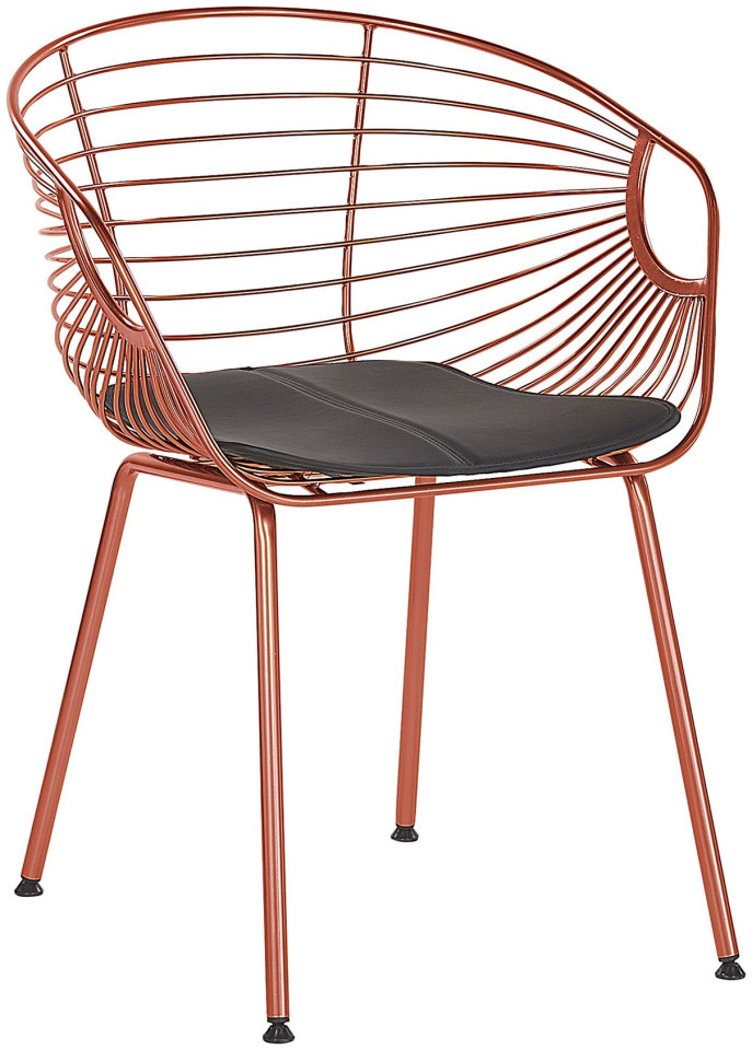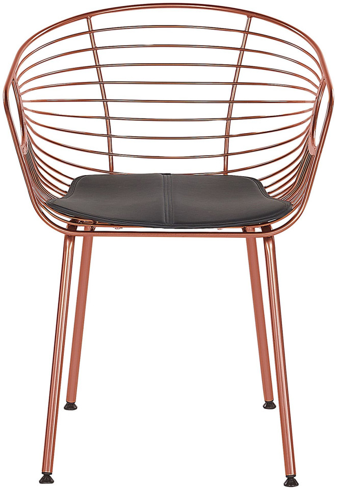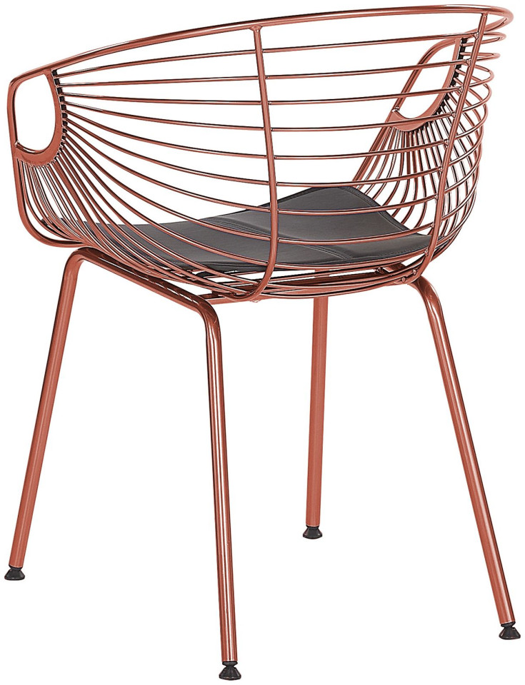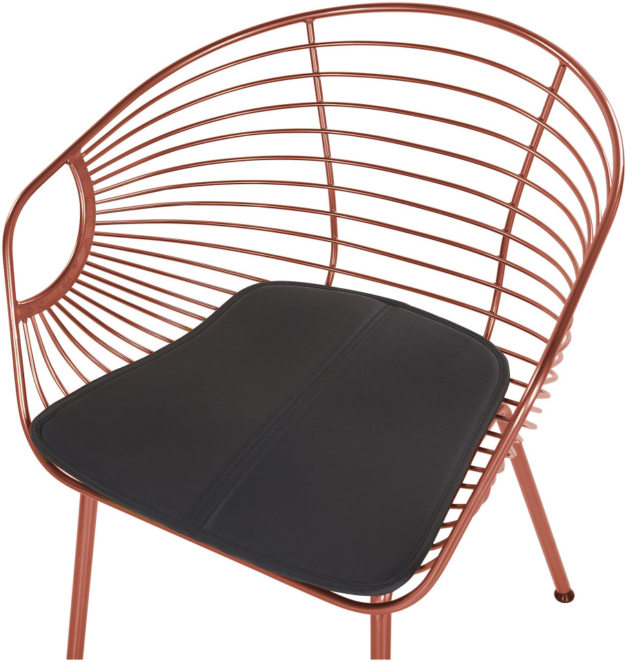 Χάρη στον κλασικό σχεδιασμό τους, αυτές οι καρέκλες θα ταιριάζουν τέλεια σε κάθε μοντέρνο εσωτερικό Εμπνευσμένο από το βιομηχανικό στυλ, η στρογγυλεμένη πλάτη και το κάθισμα τις κάνουν να φαίνονται απίστευτα ελαφριές. Το χάλκινο φινίρισμα και τα λεπτά πόδια προσθέτουν κομψότητα και αίγλη στις καρέκλες. Πρόσθετη άνεση χρήσης παρέχουν τα μαξιλάρια καθίσματος που περιλαμβάνονται από ανθεκτικό μαύρο οικολογικό δέρμα. Ύψος: 79