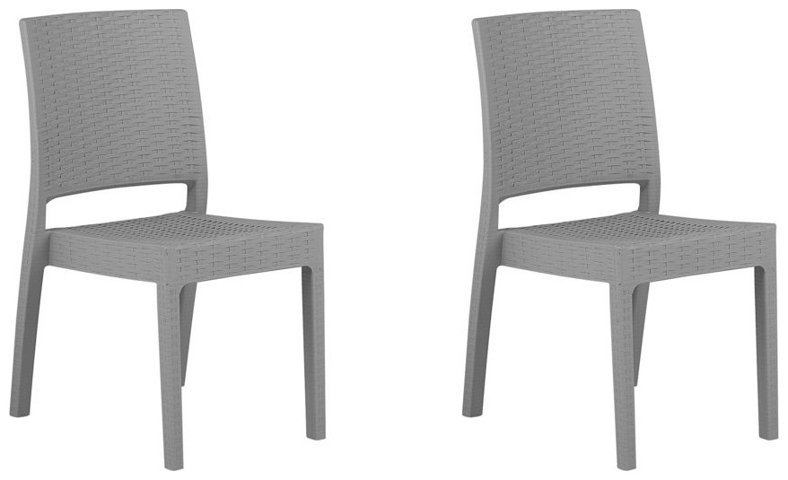 Επεκτείνετε τον κήπο σας με αυτές τις καρέκλες κήπου και απολαύστε τη συντροφιά των φίλων ή της οικογένειάς σας τα καλοκαιρινά απογεύματα. Κατασκευασμένες από συνθετικό υλικό, αυτές οι καρέκλες είναι ανθεκτικές στις μεταβαλλόμενες καιρικές συνθήκες, ενώ είναι πολύ ανθεκτικές και εύκολες στη συντήρηση. Χάρη στον απλό σχεδιασμό τους, μπορούν εύκολα να προσαρμοστούν σε πολλούς διαφορετικούς κήπους και το ανοιχτό γκρι χρώμα είναι ευχάριστο στο μάτι και ταιριάζει με διακοσμητικά μαξιλάρια ή κουβέρτες. Ύψος: 89