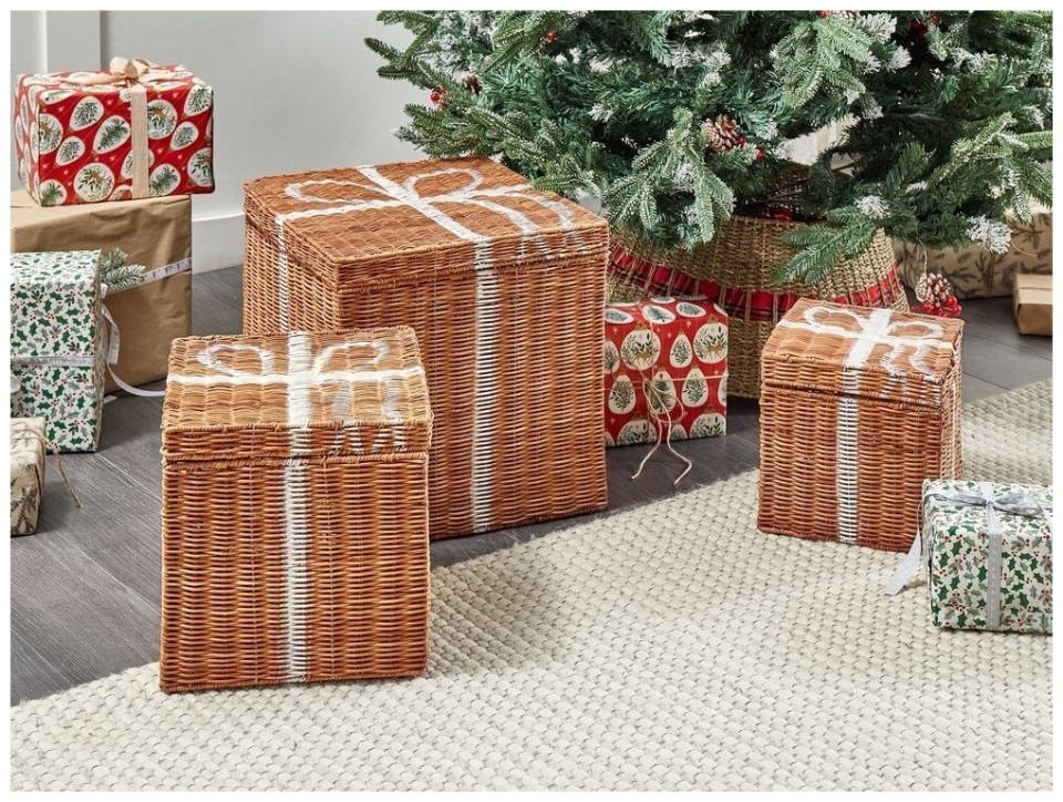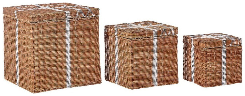 Beliani Σετ 3 κουτιά από μπαστούνι καφέ CADEAU Lumarko! 13525262 4255664839459
