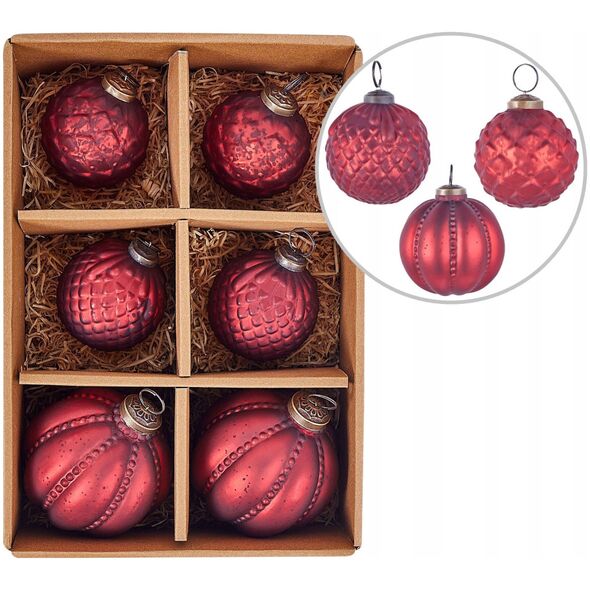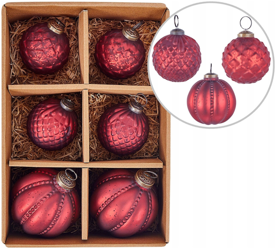 Beliani Σετ με 6 κόκκινα γυάλινα μπιχλιμπίδια ARGENTIN Lumarko! 13553905 4255664856692