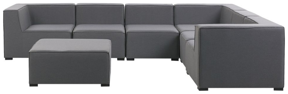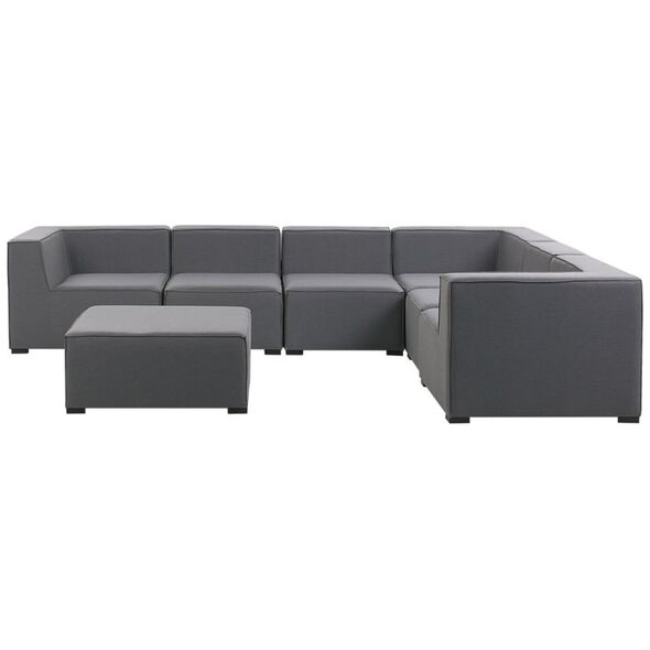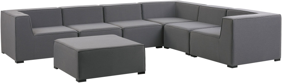 Αυτό το ευέλικτο σετ αποτελείται από 3 γωνιακούς καναπέδες, 3 πολυθρόνες χωρίς υποβραχιόνια και ένα υποπόδιο. Μεμονωμένα στοιχεία μπορούν να συνδυαστούν ελεύθερα χρησιμοποιώντας μια μονάδα σύνδεσης για να δημιουργήσουν έναν μεγάλο, χωρικό συνδυασμό γωνίας. Επιπλέον, όλα τα μέρη μπορούν να τοποθετηθούν ξεχωριστά, γεγονός που σας επιτρέπει να τακτοποιήσετε μεμονωμένα τα έπιπλα ώστε να ταιριάζουν στον διαθέσιμο χώρο και στις δικές σας προτιμήσεις. Το σετ περιλαμβάνει επίσης ένα μεγάλο υποπόδιο, το οποίο μπορεί να είναι ένα άνετο στήριγμα για τα πόδια, ένα επιπλέον κάθισμα ή ένα πρακτικό μέρος για μια εφημερίδα. Ο σταθερός, μαύρος σκελετός είναι εξοπλισμένος με πόδια και είναι κατασκευασμένος από μέταλλο με βαφή πούδρας. Το ύφασμα είναι ανθεκτικό στις καιρικές συνθήκες και στην υπεριώδη ακτινοβολία, καθώς και στη μούχλα και τη βρωμιά. Η μοντέρνα εμφάνιση όλων των στοιχείων κάνει το σετ τέλειο για πολλούς διαφορετικούς χώρους Βάρος: 87 Ύψος καθίσματος: 37 Υλικό: Πολυεστέρας{Χρώμα} Γκρι . {Χρώμα} Γκρι . {Χρώμα} Γκρι . {Χρώμα} Γκρι . {Χρώμα} Γκρι . {Χρώμα} Γκρι
