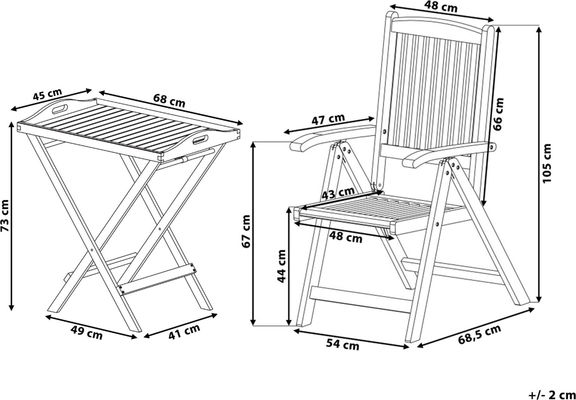 Καθίστε αναπαυτικά με τον πρωινό σας καφέ με αυτό το κλασικό σετ επίπλων μπαλκονιού. Κατασκευασμένο από υψηλής ποιότητας ξύλο ακακίας σε ανοιχτόχρωμη απόχρωση, εγγυάται ανθεκτικότητα και ο παραδοσιακός σχεδιασμός το καθιστά κατάλληλο για κάθε διάταξη. Το τραπέζι και οι καρέκλες μπορούν να διπλωθούν, ώστε να εξοικονομήσετε πολύ χώρο κατά την αποθήκευση των επίπλων εκτός εποχής Βάρος: 19,6