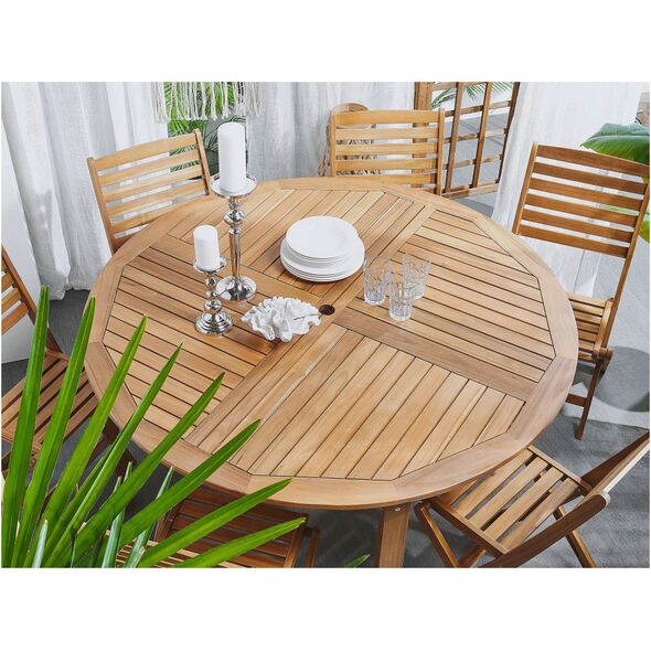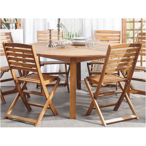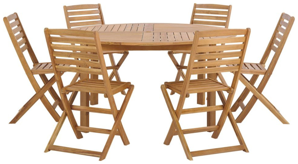 Οι ζεστοί μήνες είναι η τέλεια στιγμή για να απολαύσετε γεύματα σε εξωτερικούς χώρους με την οικογένεια και τους φίλους σας. Χάρη σε αυτό το σετ 7 τεμαχίων, μπορείτε εύκολα να δημιουργήσετε μια ζεστή τραπεζαρία στον κήπο ή στη βεράντα. Το στρογγυλό τραπέζι προσφέρει πολύ χώρο και το σχήμα του δίνει την αίσθηση ενός κλειστού, οικείου χώρου, ιδανικό για μεγάλες συνομιλίες. Το πάνω μέρος του έχει σχεδιαστεί με τρύπα για ομπρέλα. Οι καρέκλες μινιμαλιστικού στυλ που περιλαμβάνονται στο σετ ταιριάζουν παντού και είναι αναδιπλούμενες για εύκολη αποθήκευση. Η φυσική εμφάνιση των επίπλων από ξύλο ακακίας ταιριάζει τέλεια στο πράσινο και φαίνεται εξίσου εξαιρετική στους εσωτερικούς χώρους Βάρος: 57 Ύψος καθίσματος: 47 Υλικό: Ξύλο ακακίας{Υλικό} Ξύλο . {Υλικό} Ξύλο . {Υλικό} Ξύλο . {Υλικό} Ξύλο . {Υλικό} Ξύλο . {Υλικό} Ξύλο . {Υλικό} Ξύλο . {Υλικό} Ξύλο . {Υλικό} Ξύλο . {Αριθμός καρεκλών} 6 . {Αριθμός καρεκλών} 6 . {Αριθμός καρεκλών} 6 . {Αριθμός καρεκλών} 6 . {Αριθμός καρεκλών} 6 . {Αριθμός καρεκλών} 6 . {Αριθμός καρεκλών} 6 . {Αριθμός καρεκλών} 6 . {Αριθμός καρεκλών} 6 . {Υλικό} Technorattan. {Υλικό} Technorattan. {Υλικό} Technorattan. {Υλικό} Technorattan. {Υλικό} Technorattan. {Υλικό} Technorattan. {Υλικό} Technorattan. {Υλικό} Technorattan. {Υλικό} Technorattan. {Χρώμα καρέκλας} Καφέ . {Χρώμα καρέκλας} Καφέ . {Χρώμα καρέκλας} Καφέ . {Χρώμα καρέκλας} Καφέ . {Χρώμα καρέκλας} Καφέ . {Χρώμα καρέκλας} Καφέ . {Χρώμα καρέκλας} Καφέ . {Χρώμα καρέκλας} Καφέ . {Χρώμα καρέκλας} Καφέ . {Πλάτος τραπεζιού} 150 cm. {Πλάτος τραπεζιού} 150 cm. {Πλάτος τραπεζιού} 150 cm. {Πλάτος τραπεζιού} 150 cm. {Πλάτος πίνακα} 1