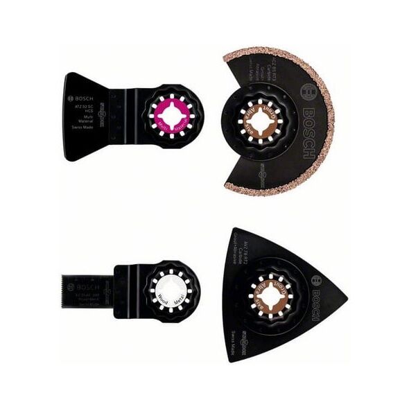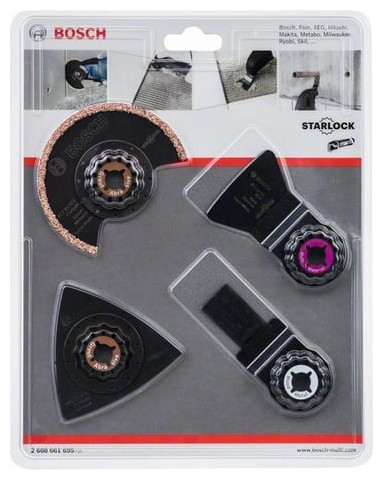 Zestaw do płytek 4szt. (2608661695) Specyfikacja produktu: Uniwersalny zestaw do płytek do prac związanych z remontami i przebudowami (np. wycinanie fug w płytkach ściennych i podłogowych, usuwanie zaprawy lub kleju do płytek, mniejsze wycięcia w miękkich płytkach ściennych) Zawartość zestawu: Brzeszczot segmentowy Carbide-RIFF ACZ 85 RT3 (1x) Płyta szlifierska Carbide-RIFF AVZ 78 RT2 (1x) Skrobak HCS ATZ 52 SC (1x) Brzeszczot BIM do cięcia wgłębnego Metal AIZ 20 AB (1x)