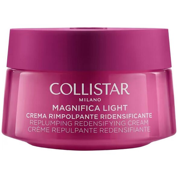 Collistar Magnifica Light Replumping Resensifying Cream. Τύπος προϊόντος: Κρέμα ημέρας και νύχτας, Κατάλληλο για: Γυναίκες, Κατάλληλο για τύπο δέρματος: Μικτό δέρμα, Κανονικό δέρμα, Ευαίσθητο δέρμα. Ποσότητα ανά συσκευασία: 1 τεμ.{Type} Για τη νύχτα. {Formula} Standard . {Για} Μικτό δέρμα. {Για} Κανονικό δέρμα. {Χωρητικότητα} 50 ml. {Ιδιότητες} Ενυδατική