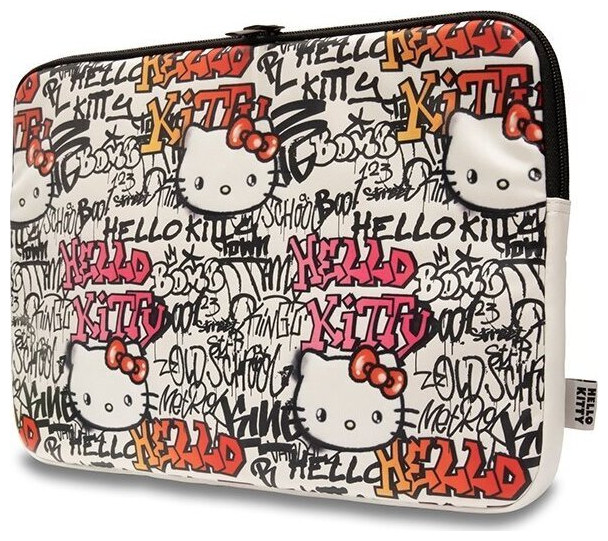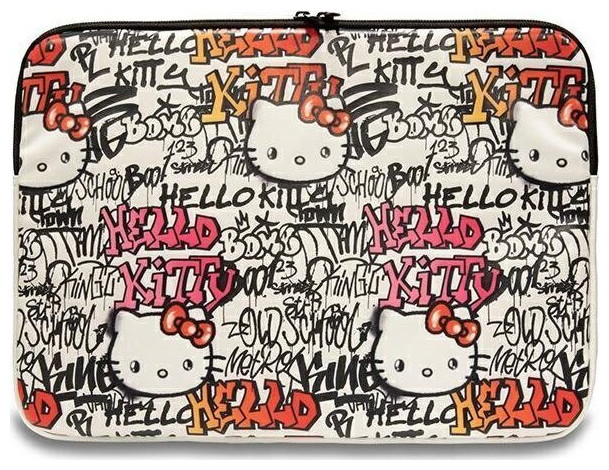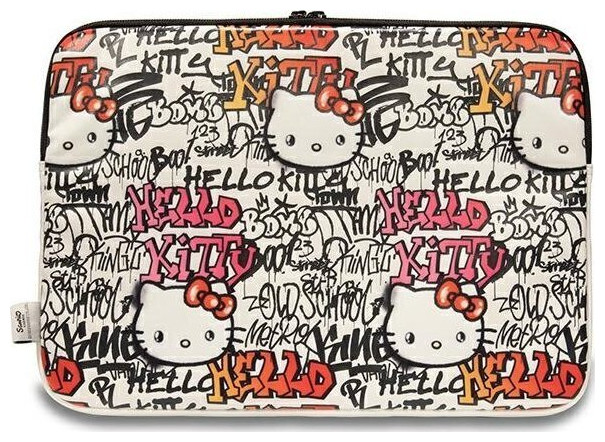 Θήκη Sourcing Hello Kitty Sleeve HKCSZPDGPTE 14" μπεζ/μπεζ Φερμουάρ PU Ετικέτες Graffiti