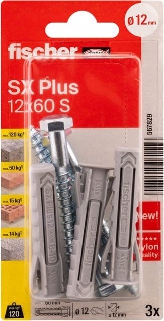 Πείροι Fischer FISCHER με βίδες SX Plus S, 12x60 mm, 3 τεμ.Πείροι Fischer FISCHER με βίδες SX Plus S, 12x60 mm, 3 τεμ.