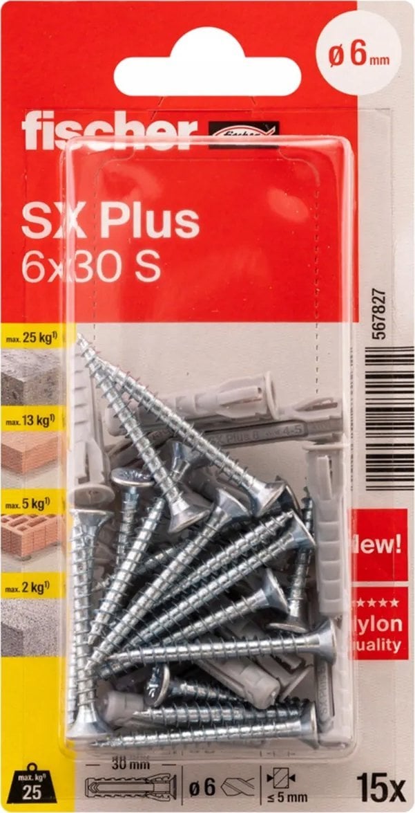 Πείροι Fischer FISCHER με βίδες SX Plus S, 6x30 mm, 15 τεμ.Πείροι Fischer FISCHER με βίδες SX Plus S, 6x30 mm, 15 τεμ.