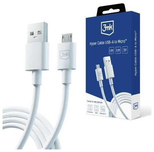 Zapomnij o używaniu wielu kabli do różnych urządzeń i zadań! Hyper Cable USB-A to Micro od 3mk Protection to uniwersalny, wysokowydajny przewód micro USB, który służy zarówno do transferu danych, jak i do szybkiego ładowania sprzętów. Kabel wyposażono w standardowy wtyk micro USB, co gwarantuje jego szeroką kompatybilność. Uzbrojony w technologie premium, pozwala błyskawicznie przywrócić energię w urządzeniach przenośnych oraz przesyłać nawet duże pliki w minimalnym czasie.