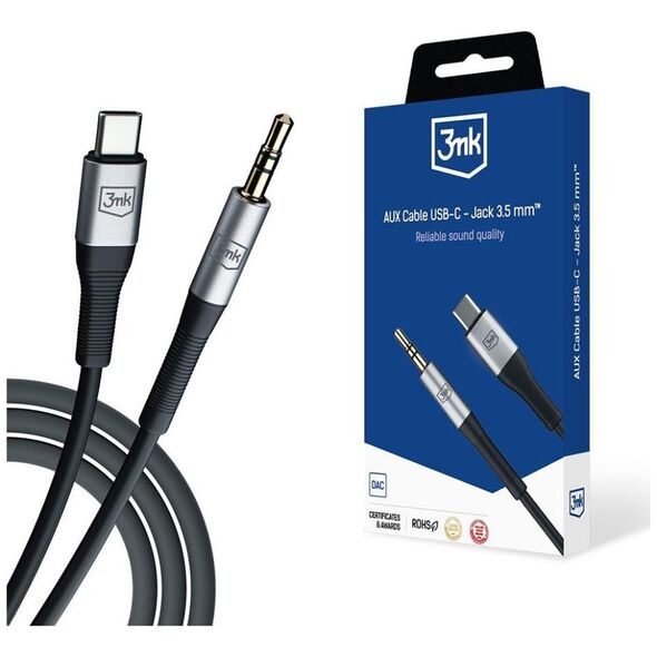 3MK USB-C - Mini Jack 3,5 mm καλώδιο USB Μαύρο και ασημί (AUX USB-C - Jack 3,5 mm) 13114778 5903108528788