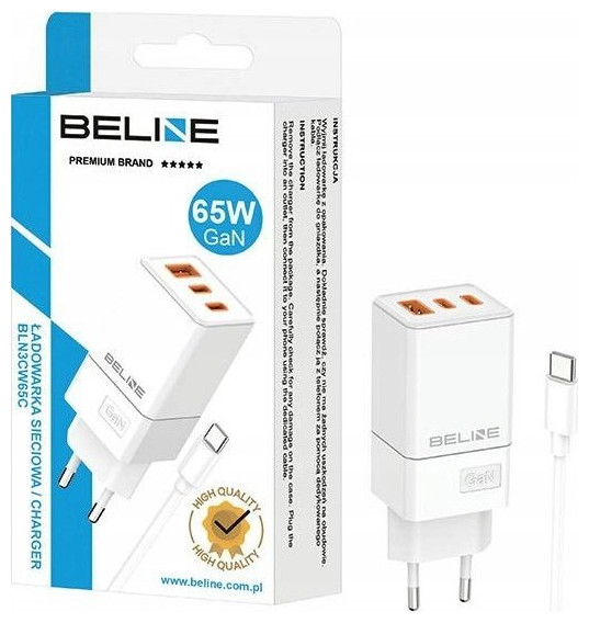 Φορτιστής Beline 65W Φορτιστής δικτύου GaN 2xUSB-C + USB-A + καλώδιο USB-C Λευκό 13168903 5905908351917