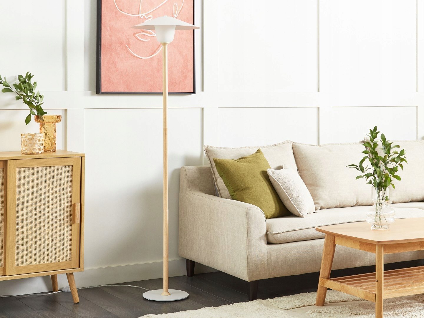 Φωτιστικό δαπέδου Beliani Ξύλινο φωτιστικό δαπέδου λευκό MOPPY Lumarko! 13295372 4255664832962