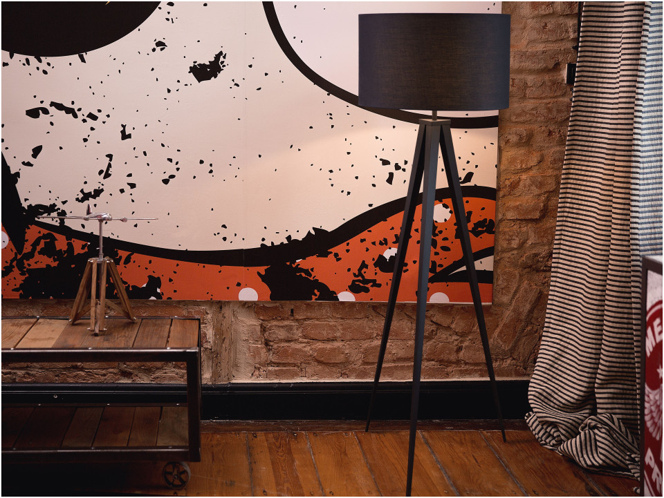 Αυτό το φωτιστικό δαπέδου είναι ένας συνδυασμός τριών ποδιών από μαύρο μέταλλο και μαύρου ματ πλαστικού αμπαζούρ. Το απαλά διάχυτο φως της λάμπας θα προσφέρει μια ζεστή ατμόσφαιρα. Αυτή η εκφραστική προφορά θα είναι ο τέλειος σύντροφος σε έναν καναπέ ή μια πολυθρόνα σε ένα σαλόνι διακοσμημένο σε μοντέρνο, vintage ή λαμπερό στυλ. Ύψος: 156