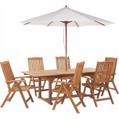 Σετ κήπου Beliani από ξύλο ακακίας τραπέζι και 6 καρέκλες JAVA με ομπρέλα (12 επιλογές για να διαλέξετε) Lumarko!
