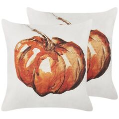 Beliani Lumarko 2 Βελούδινα Διακοσμητικά Μαξιλάρια Με Μοτίφ κολοκύθας 45 Χ 45 Εκ. Μπεζ Με Πορτοκαλί Curbita! 12608455 4251682286022