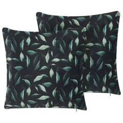 Beliani Lumarko 2 βελούδινα διακοσμητικά μαξιλάρια με φύλλα 45 x 45 cm πράσινα και μαύρα TOADFLAX! 11755425 4251682276009