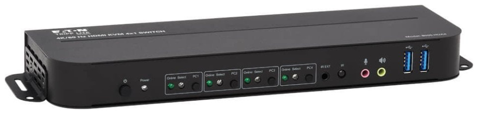 Διακόπτης Eaton Eaton Tripp Lite series HDMI USB KVM Switch 4-Port 4K 60Hz HDR HDCP 2.2 IR USB Sharing - KVM-/Audio-/USB-Switch - 4 x KVM/Audio/USB - 1 τοπικός χρήστης - Επιτραπέζιος