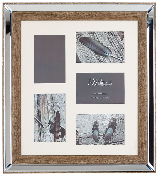 Ο καθένας έχει περισσότερες από μία φωτογραφίες που θα ήθελε να εμφανίσει στον τοίχο του σαλονιού, του υπνοδωματίου ή του χολ τους. Αυτό το μοναδικό πλαίσιο μπορεί να φιλοξενήσει έως και πέντε από αυτά, έτσι θα αποφύγετε την ταλαιπωρία να κρεμάσετε μεμονωμένα κουφώματα. Κατασκευασμένο από συνθετικό υλικό με φινίρισμα από σκούρο ξύλο, είναι διακοσμημένο με στοιχεία καθρέφτη που προσθέτουν μια λαμπερή λάμψη. Ένα ανοιχτόχρωμο passe-partout θα σας επιτρέψει να απομονώσετε κάθε φωτογραφία, αποφεύγοντας έτσι την εντύπωση του χάους. Ύψος: 44