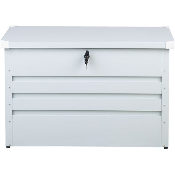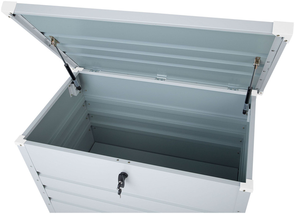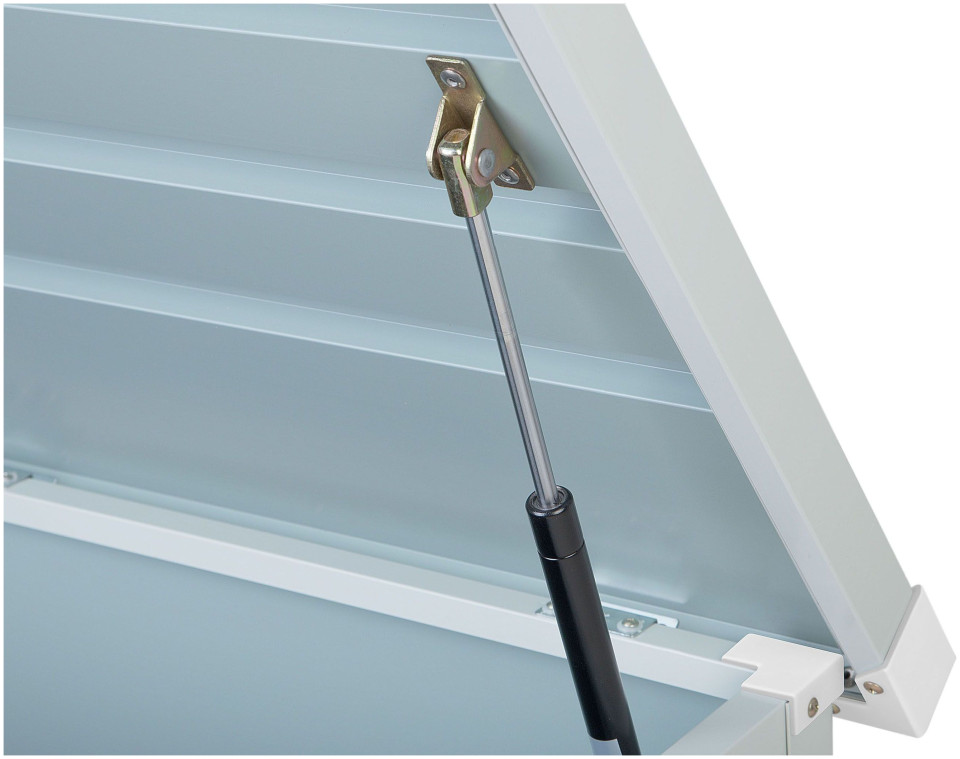 Αποθηκεύστε τα εργαλεία, τα μαξιλάρια ή τις κουβέρτες σας και άλλα αξεσουάρ κήπου σε αυτό το ευρύχωρο κουτί από γαλβανισμένο χάλυβα. Το καπάκι του κουτιού είναι εξοπλισμένο με ανυψωτικό αερίου, που διευκολύνει πολύ το άνοιγμα και το κλείσιμο του καπακιού και η περιστροφική κλειδαριά εξασφαλίζει την ασφάλεια των αντικειμένων που είναι αποθηκευμένα στο κουτί.
