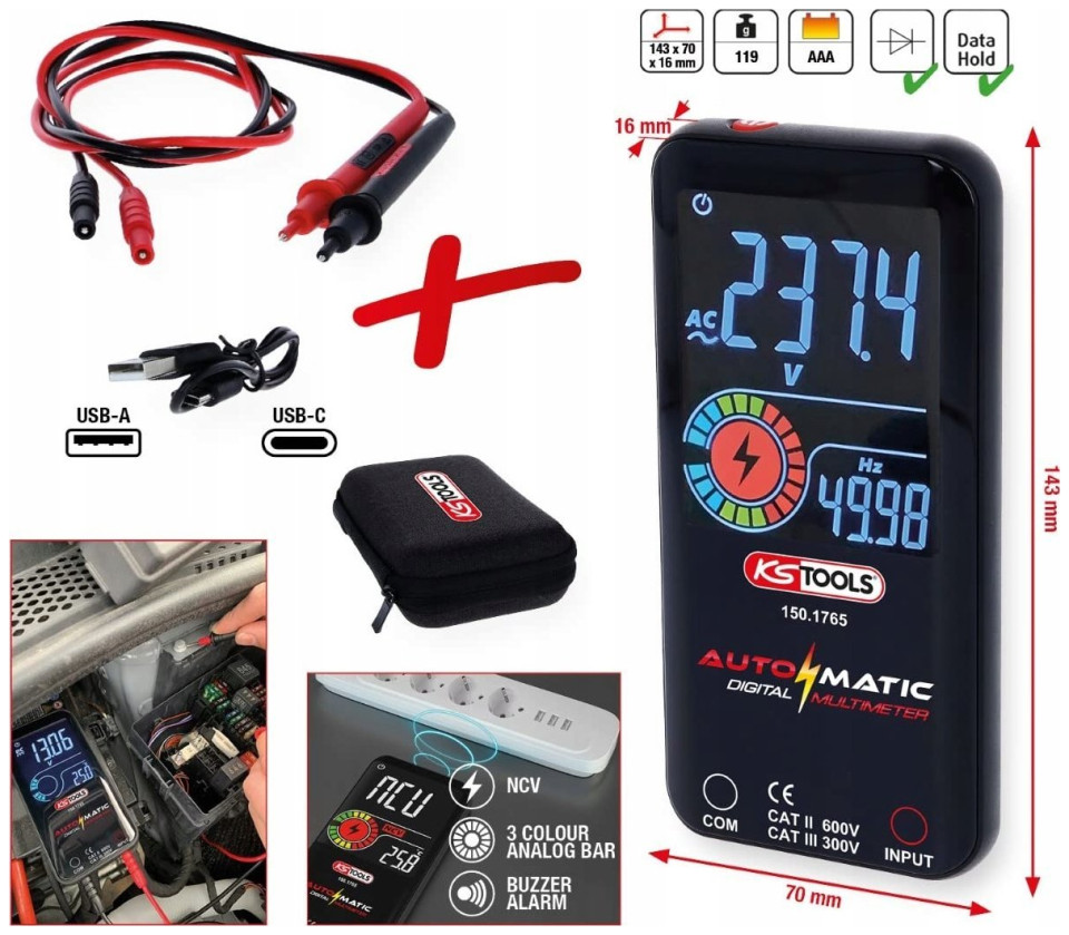 Αυτόματο ψηφιακό πολύμετρο με άκρες Sourcing KS TOOLS