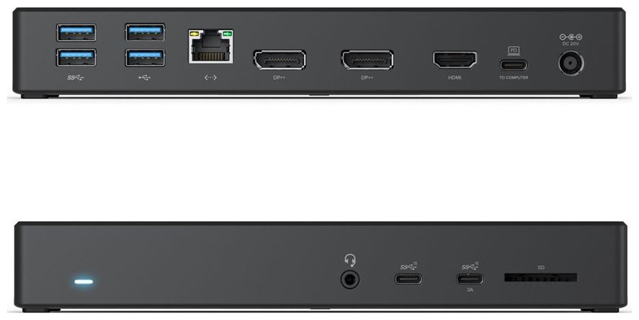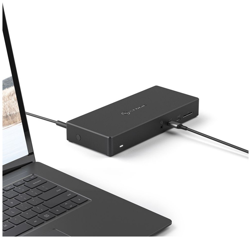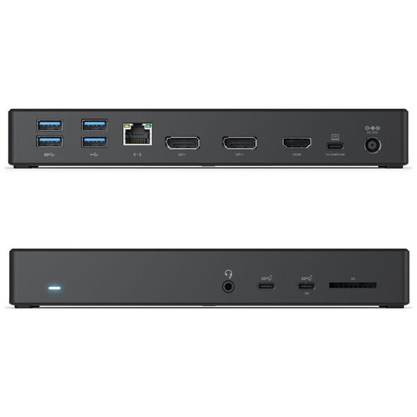 Potrójny wyświetlacz Stacja dokująca MA3 może obsługiwać do trzech zewnętrznych wyświetlaczy przez 2 x DisplayPort (DP ++ / DP 1.4) i 1 x HDMI 2.0. Stacja dokująca będzie obsługiwać rozszerzenie lub dublowanie na trzech zewnętrznych wyświetlaczach, gdy jest używana z laptopem z systemem Windows. Kompleksowa łączność Stacja dokująca MA3 obsługuje do trzech wyświetlaczy w rozdzielczości do 4K *. Oprócz możliwości podłączenia zewnętrznych monitorów, stacja dokująca zapewnia dostęp do pełnego zakresu połączeń z portami USB 3.1 Gen 2 / 10G USB-C i USB 3.1 Gen 1 i USB 2.0 USB-A, Gigabit Ethernet, gniazdo combo 3,5 mm i karta SD . Ładowanie laptopa / zasilanie o mocy 100 W Używana stacja dokująca ładuje laptopa do 100 W mocy. Pozwala to na idealne rozwiązanie z jednym kablem do dodawania wielu wyświetlaczy, akcesoriów USB, gigabitowej sieci Ethernet, słuchawek / mikrofonu i ładowania laptopa w tym samym czasie. Plug and Play: bez sterowników Dzięki konstrukcji typu plug-and-play stacja dokująca MA3 staje się rozszerzeniem Twojego laptopa bez potrzeby korzystania z oprogramowania lub sterowników.